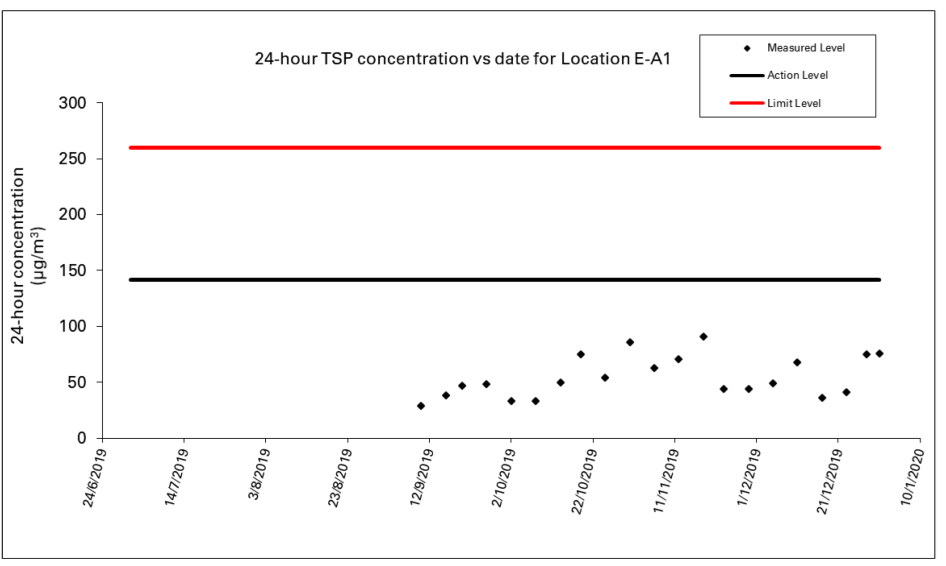 Figure 2: Graphical Illustration of Measured 24-hour TSP (μg/m3) Levels at E-A1