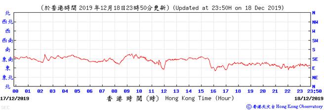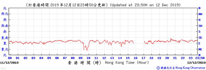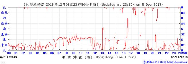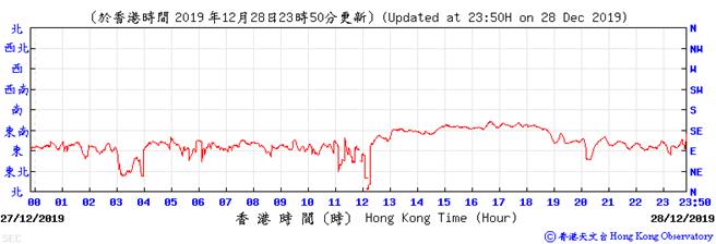 Wind direction data for 5, 6, 11, 12, 17, 18, 23, 24, 28, 29, 31 December 2019
