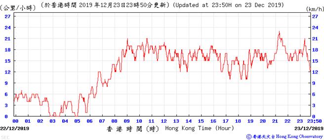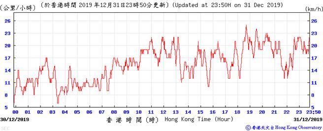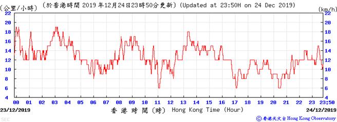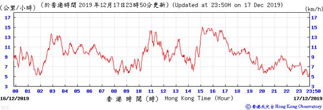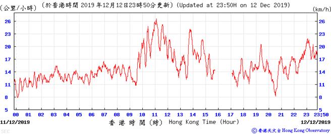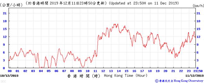 Wind speed data for 5, 6, 11, 12, 17, 18, 23, 24, 28, 29, 31 December 2019