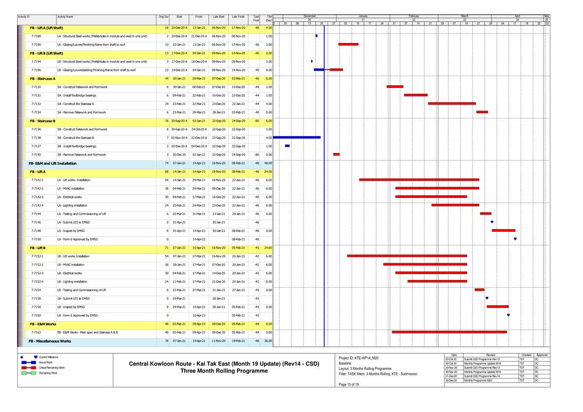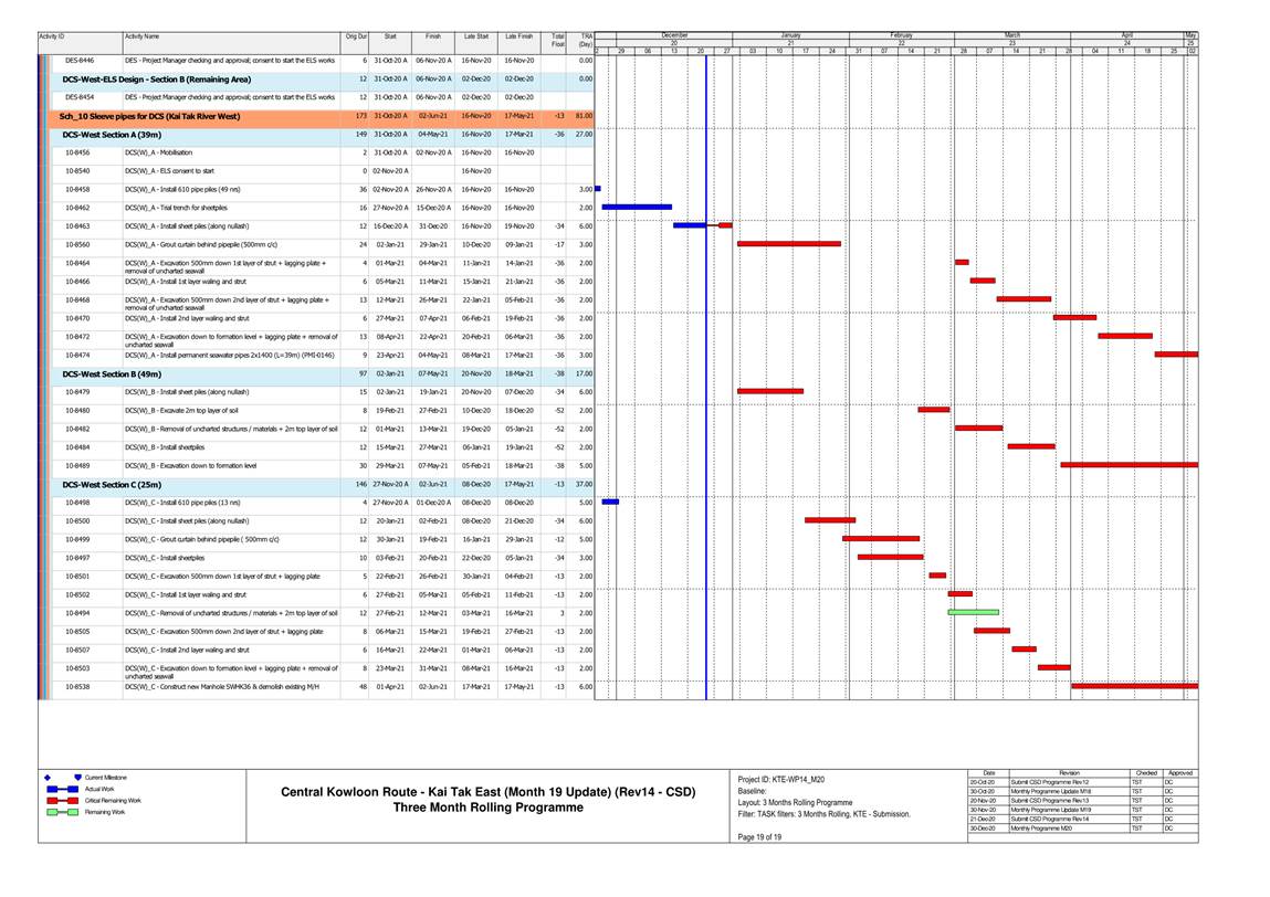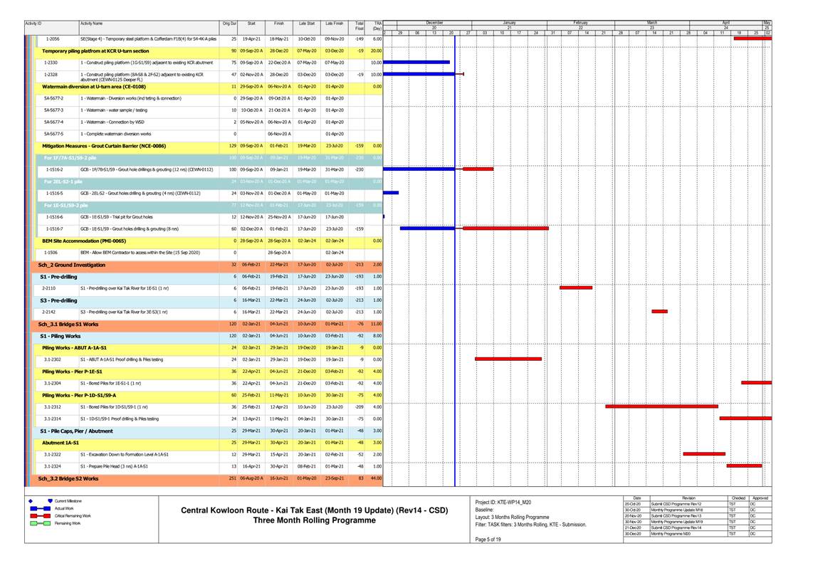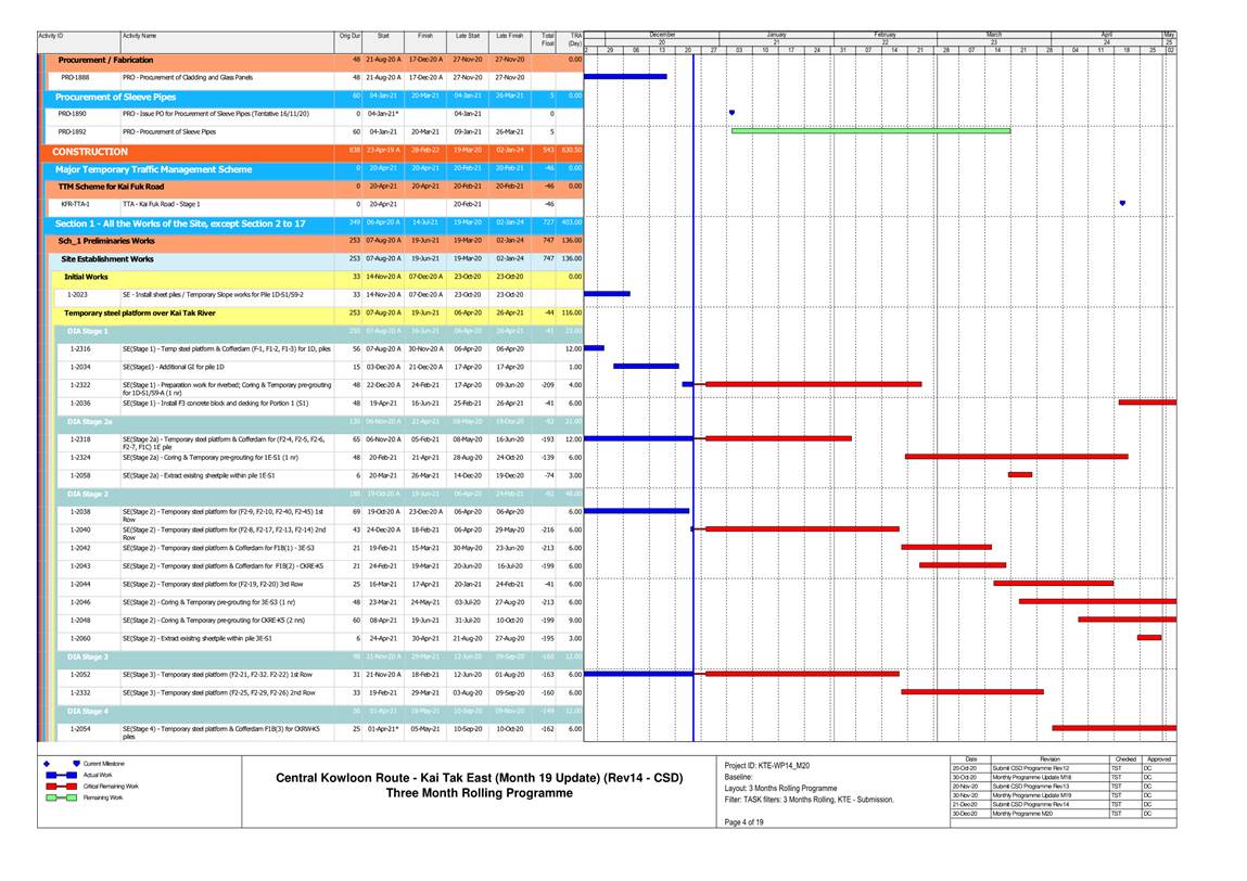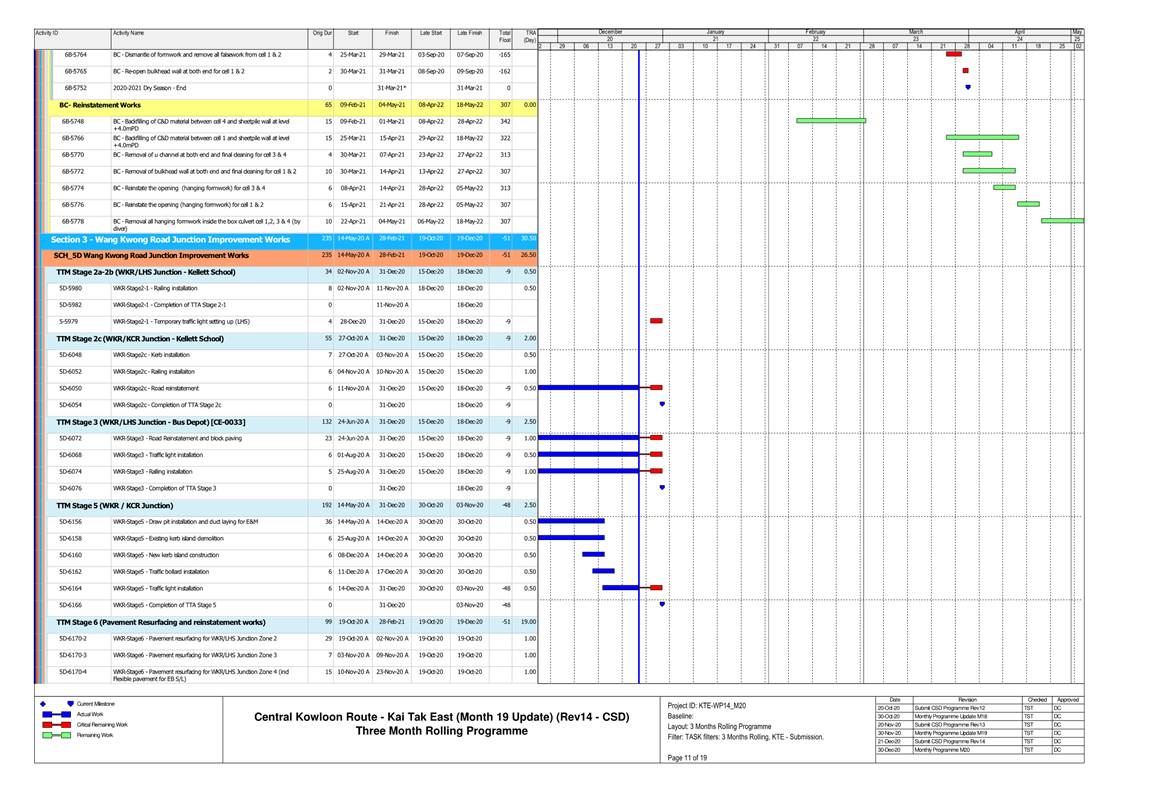 1.4. A summary of major construction activities provided by the Contractor in this reporting period is shown in Table 1.1. The construction programme is presented in Appendix B.