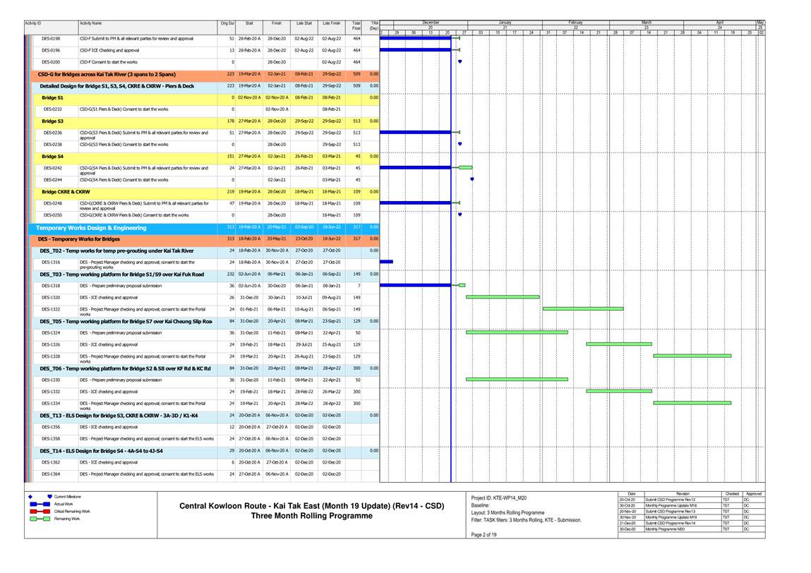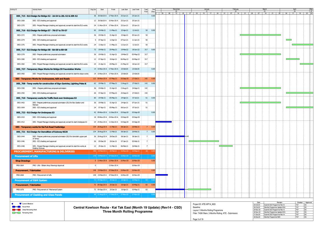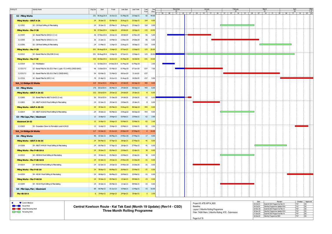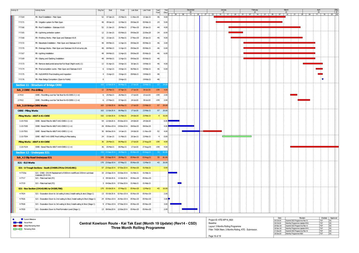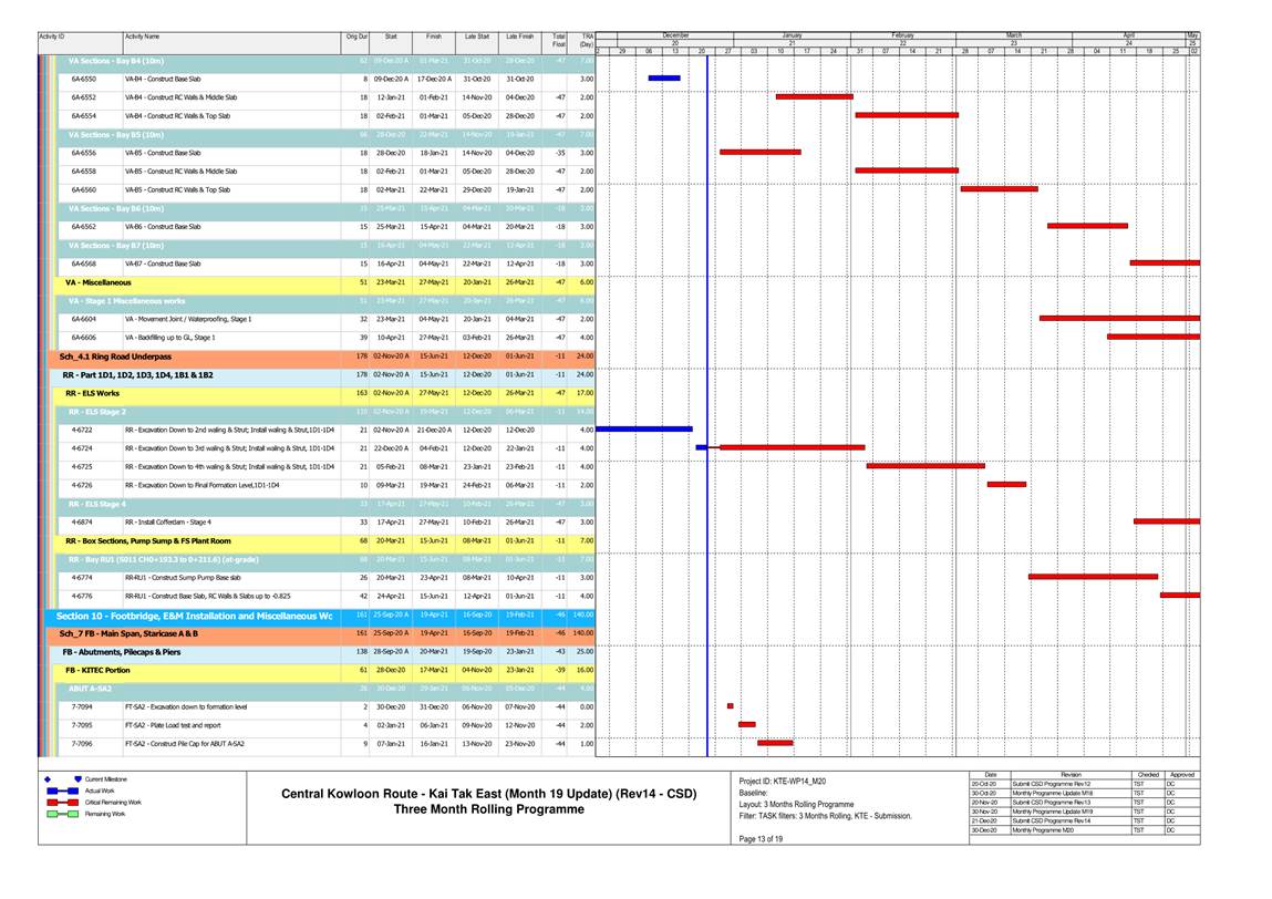 1.4. A summary of major construction activities provided by the Contractor in this reporting period is shown in Table 1.1. The construction programme is presented in Appendix B.