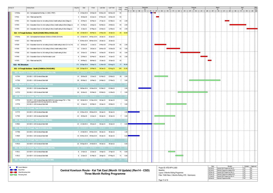 · Bored Pile at Portion 1A, 2B, 3B, Kai Cheung U Turn & Kai Cheung Loop Road. · Construction Work for the Foot Bridge at Kai Fuk Road. · Sheetpiling Works for Adit at Area Part 1B. · Sheetpiling Works for Underpass at Portion 3B. · Construction of Marine Platform at Kai Tak Nallah · Reconstruction of Box Culvert at Portion 2B · Sheetpiling Work at Area Part 1A. |