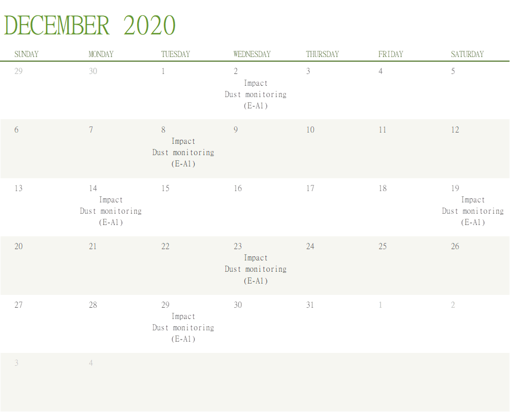 6.2 Site audits were conducted on 1, 8, 15, 22 & 29 December 2020 in the reporting month. Joint site inspection with the representative of IEC was conducted on 8 December 2020. No non-compliance was observed during the site audit.