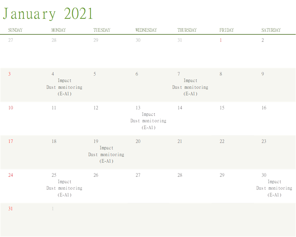 2.3 Site audits were carried out on a weekly basis to monitor and audit the timely implementation of air quality mitigation measures within the site boundaries of this Project. The summary of site audits are shown in Table 6.1 of this report.