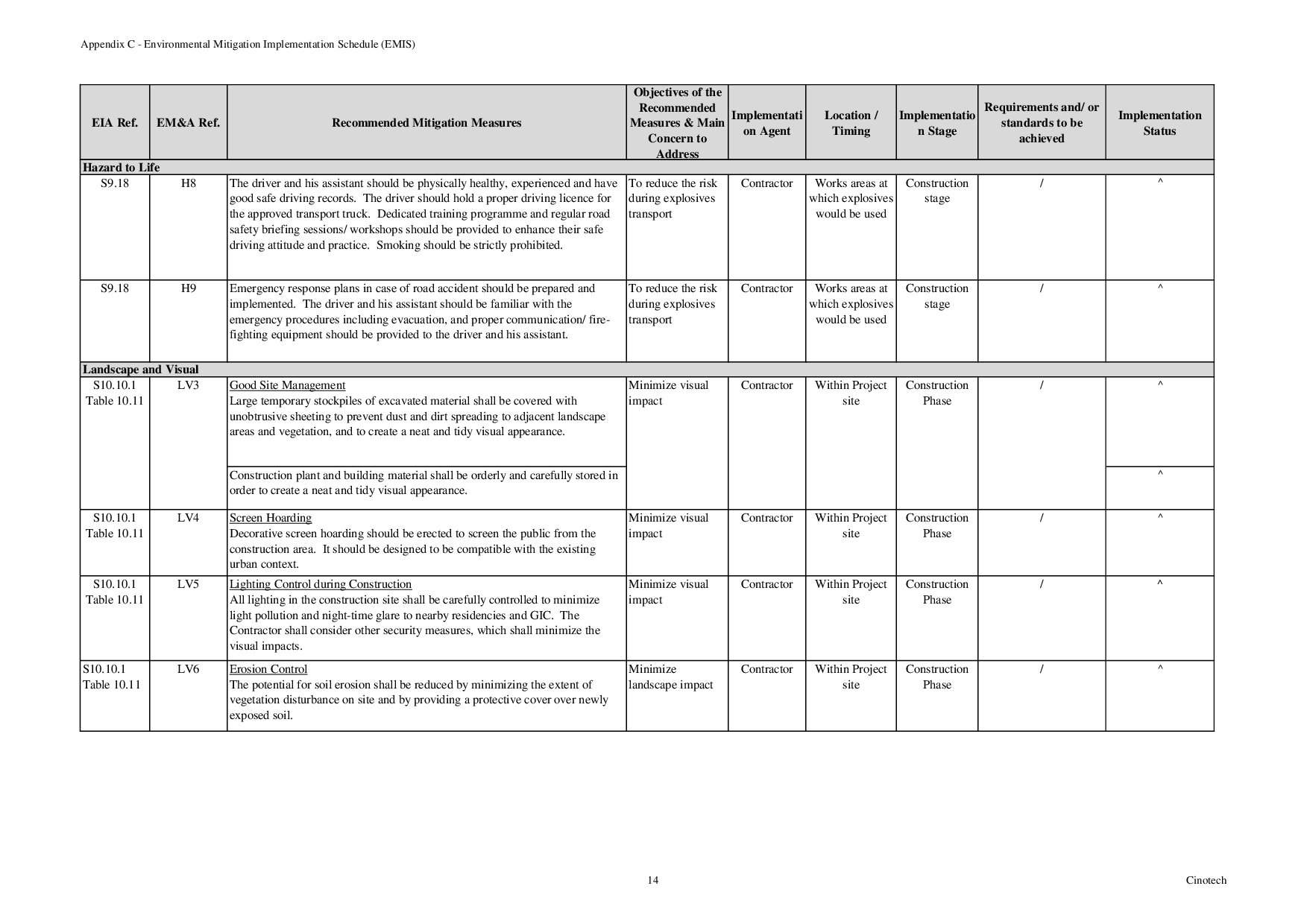 F. Environmental Mitigation Implementation Schedule (EMIS)