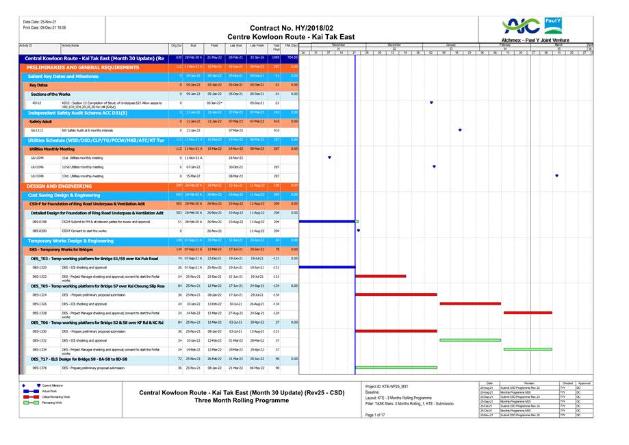 · Bored Pile at Temporary Platform& Kai Cheung U Turn. · Pile Cap Construction at Portion 1A, Kai Cheung Loop Road & Portion 2B. · RC structure for Adit at Area Part 1B. · RC structure for Underpass S3 & S21 at Portion 3B. · Construction of Temporary Platform at Kai Tak Nallah. · Retaining Wall Construction at U-Turn & Portion 2B. · Sheetpiling Work at U-Turn. · Central Divider Removal at Kai Fuk Road. |