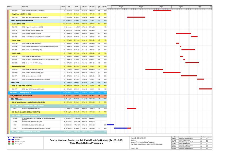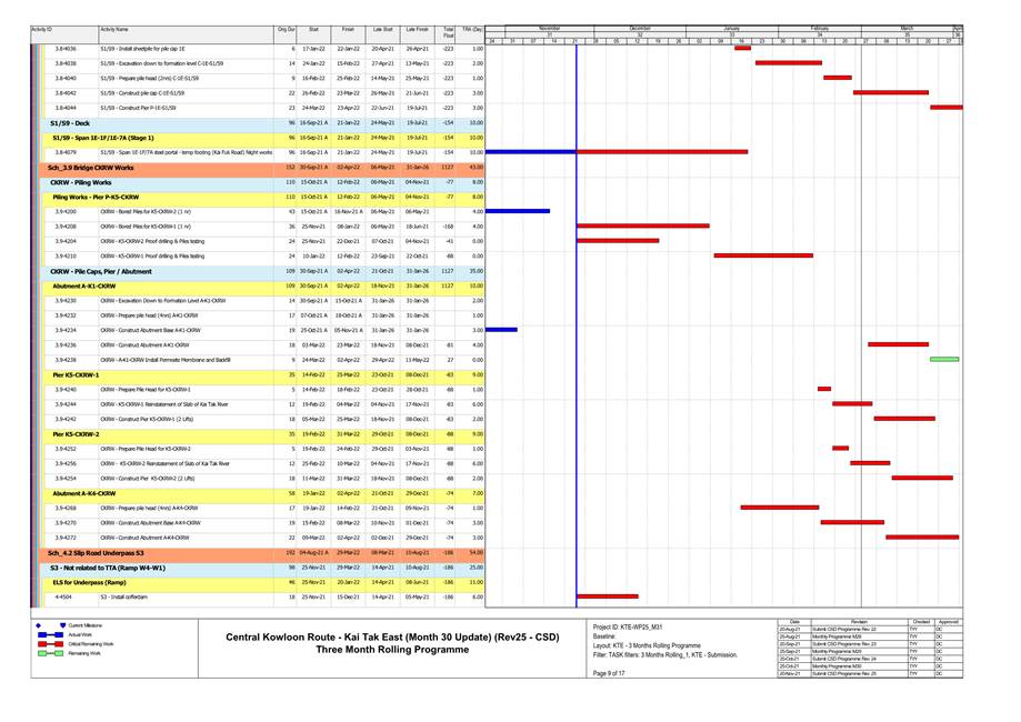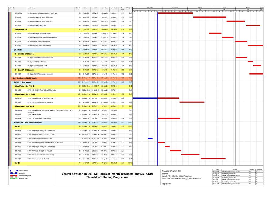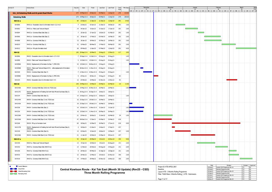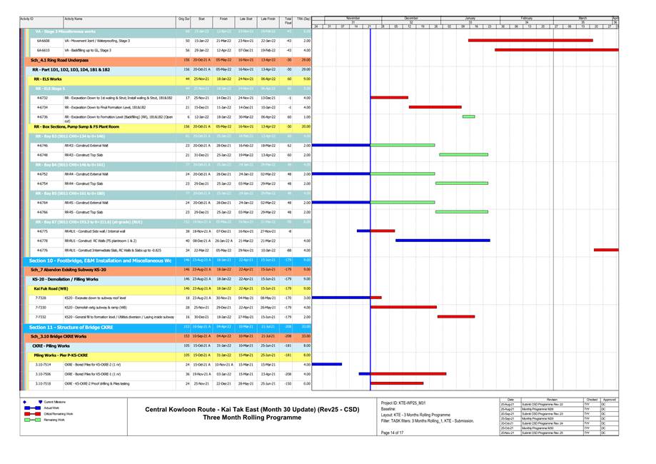 1.4. A summary of major construction activities provided by the Contractor in this reporting period is shown in Table 1.1. The construction programme is presented in Appendix B.