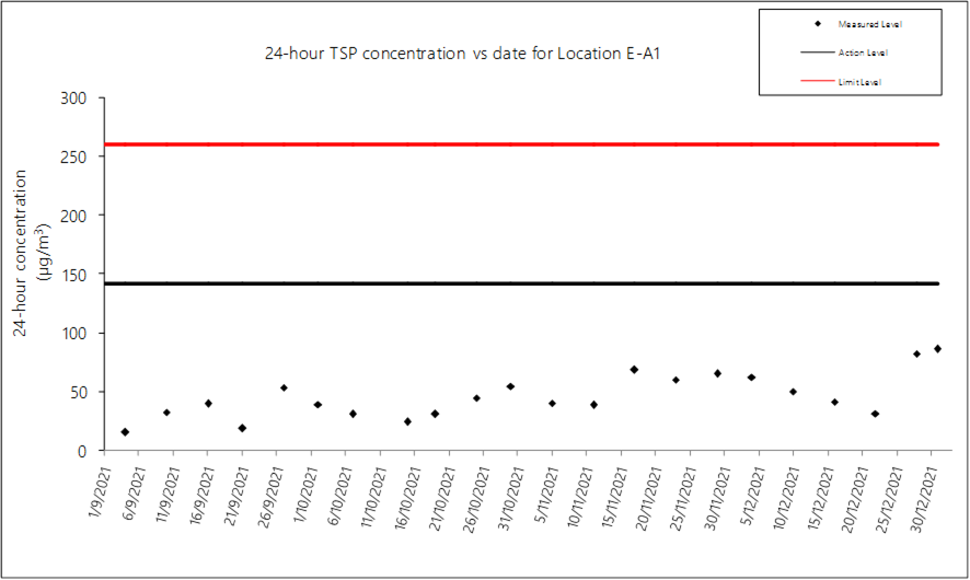 A.7 No exceedance of the Action and Limit Levels of 24-hour TSP and 1-hour TSP monitoring were recorded during the reporting month.
