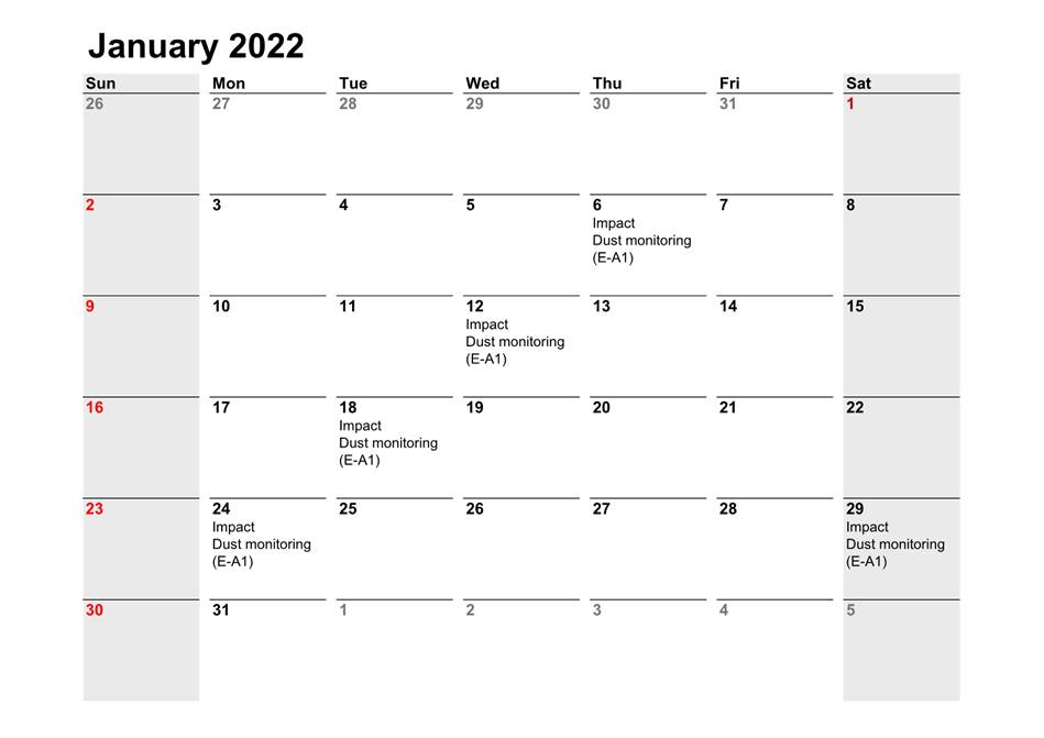 2.3 Site audits were carried out on a weekly basis to monitor and audit the timely implementation of air quality mitigation measures within the site boundaries of this Project. The summary of site audits are shown in Table 6.1 of this report.