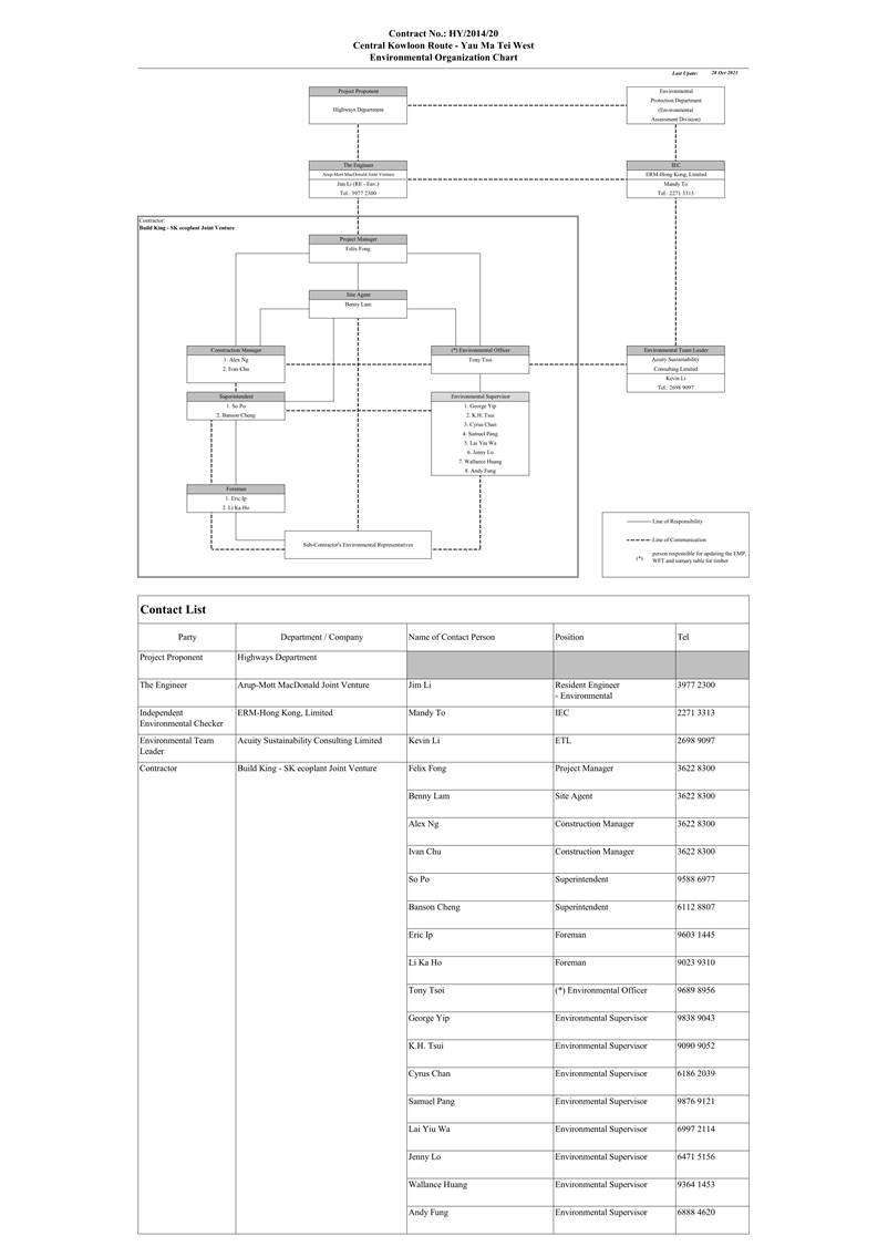 1.3. The construction of the CKR had been divided into different sections. This Contract No. HY/2014/20 – Section of Yau Ma Tei West (YMTW) covers part of the construction activities located at Yau Ma Tei under the EP which includes: