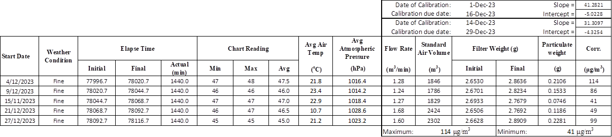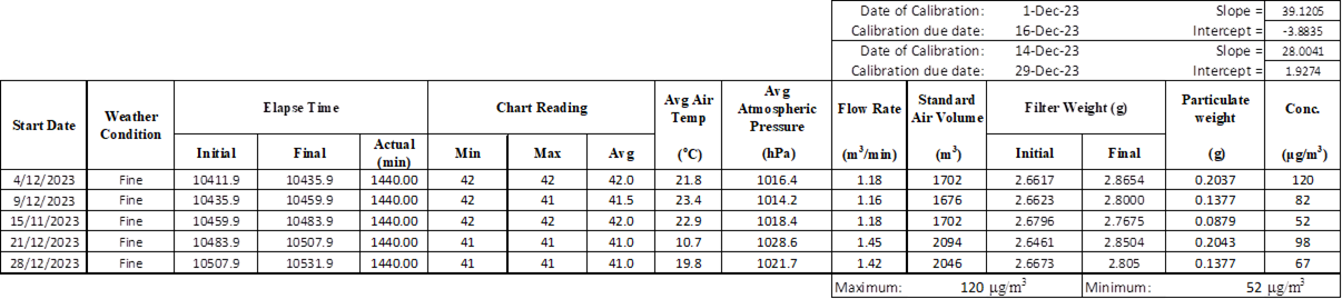 4. A summary of the non-compliance (exceedance) during the reporting month (December 2023) and the investigation results and/or follow-up actions is provided below: