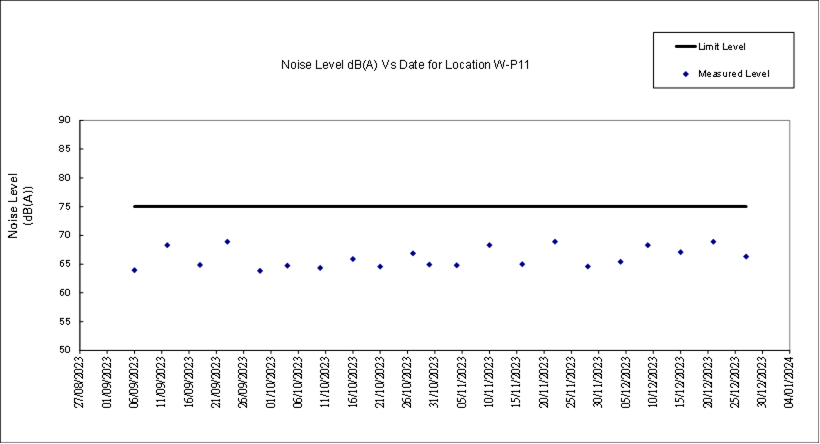 A.7 Three Action Levels of construction noise were triggered during the reporting month as documented complaints were received. No exceedance of Limit Level of construction noise was recorded in the reporting month. No exceedance of the Action and Limit Level of 24 hour TSP and 1 hour TSP was recorded in the reporting month.