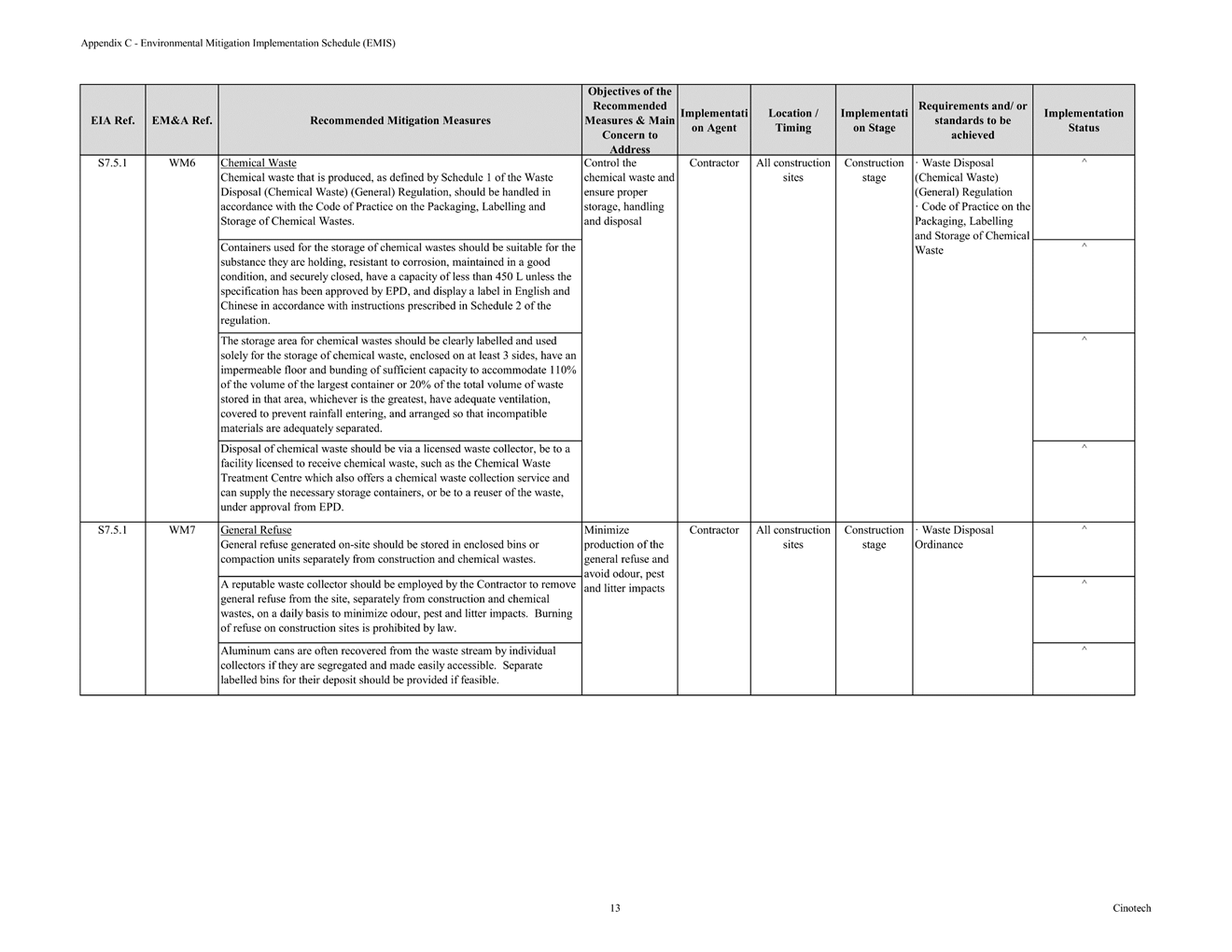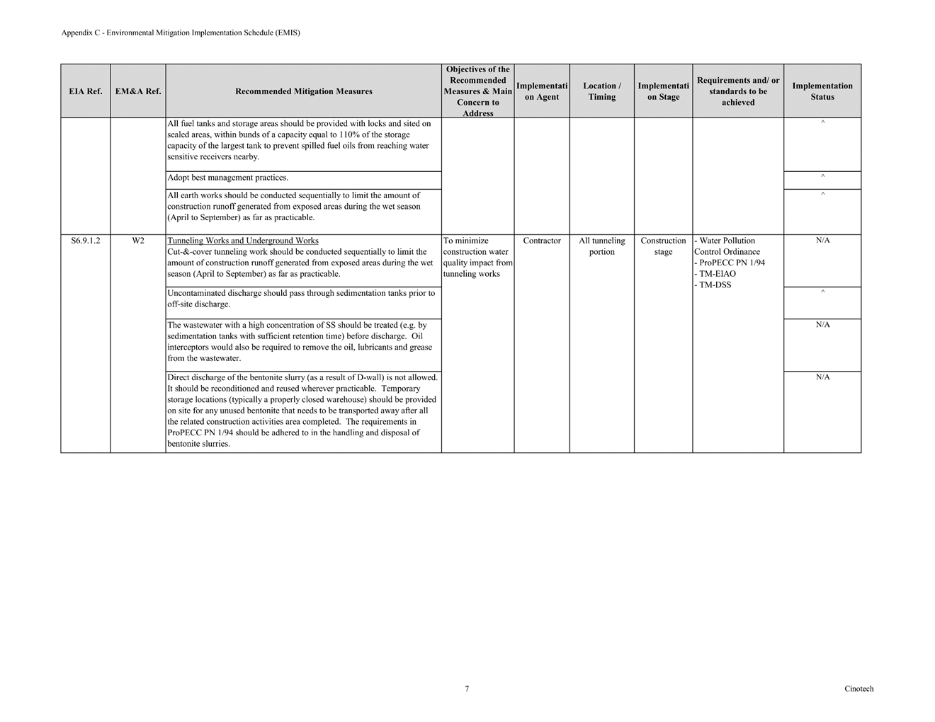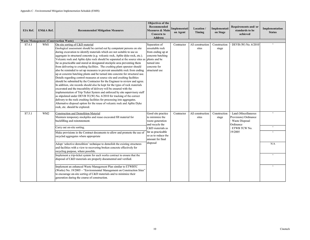Appendix C Environmental Mitigation Implementation Schedule (EMIS)