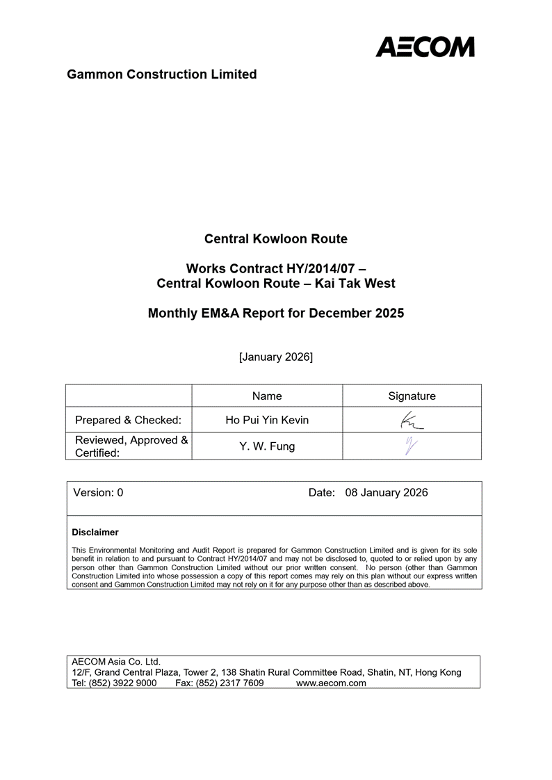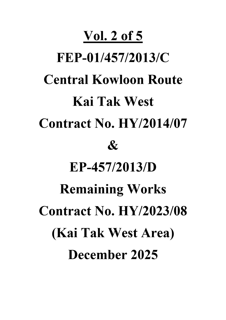 All construction works of Contract No. HY/2014/07 Central Kowloon Route – Kai Tak West (FEP-01/457/2013/C) are substantially completed in September 2025. The proposal of termination of the EM&A Programme under FEP-01/457/2013/C was submitted on 28 November 2025.