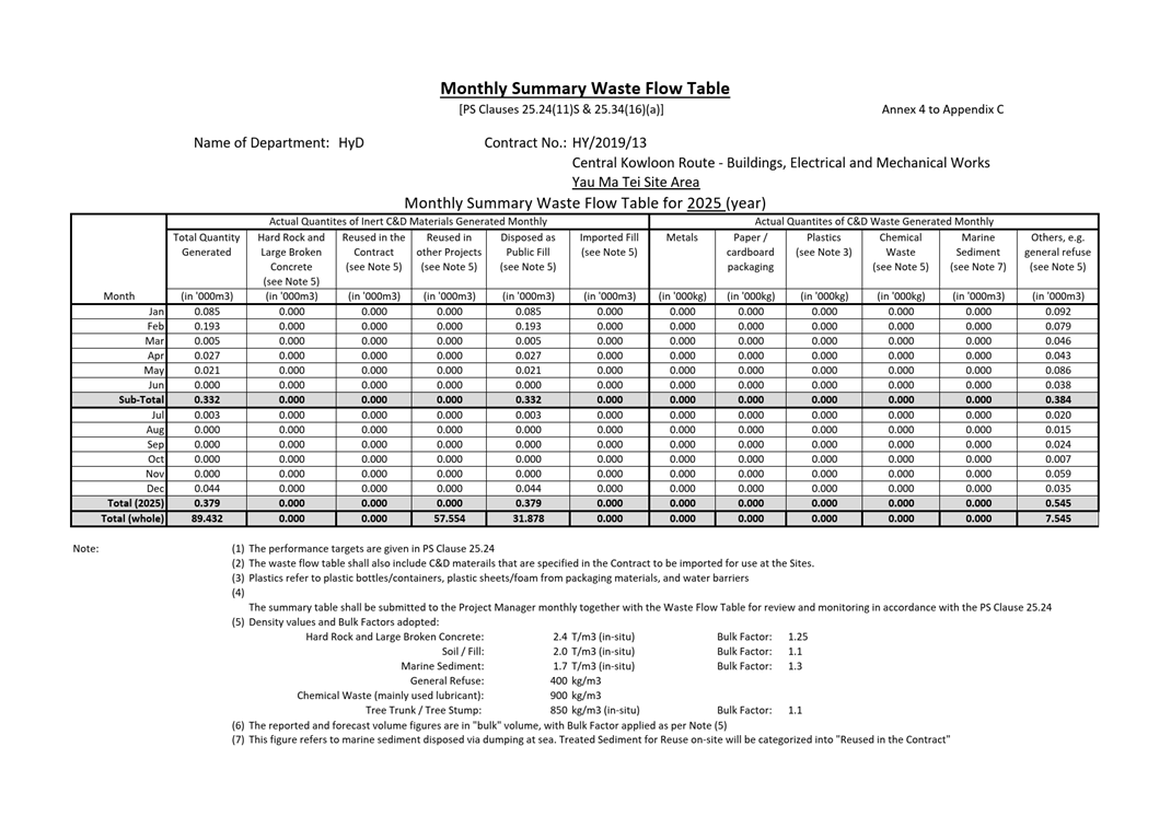 A.1 Build King – SK ecoplant Joint Venture (“Contractor”) commenced the construction works of Highway Department (HyD) Central Kowloon Route Contract No. HY/2014/20 – Section of Yau Ma Tei West (“The Project”) on 12 February 2019. The Project is tentatively scheduled to be completed in March 2026, with the last EM&A report expected to be submitted in April 2026. This is the 83rd monthly Environmental Monitoring and Audit (EM&A) report presenting the EM&A works carried out during the period from 1 December 2025 to 31 December 2025.