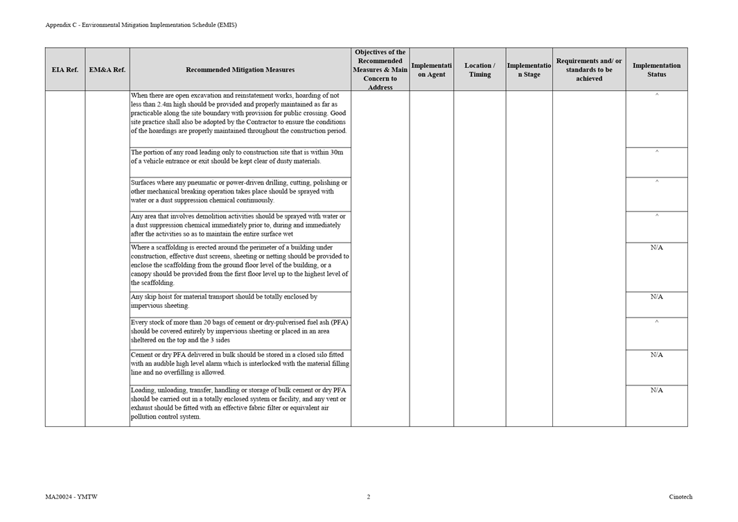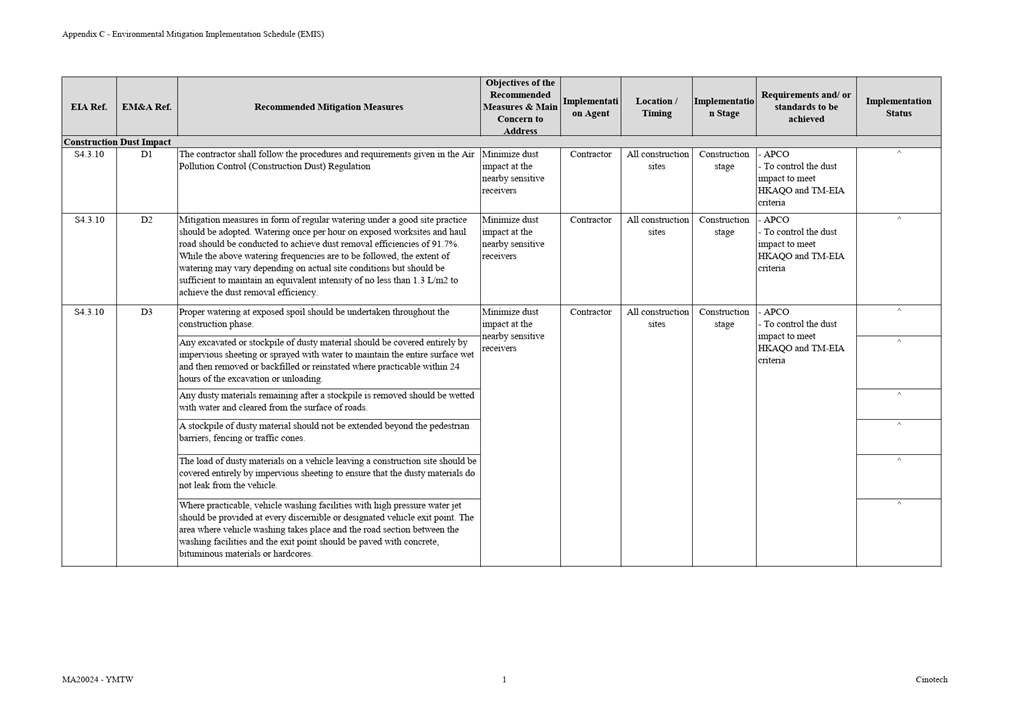 · APCO · To control the dust impact to meet HKAQO and TM-EIA criteria |