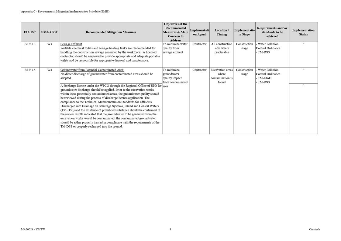 F. Environmental Mitigation Implementation Schedule (EMIS)