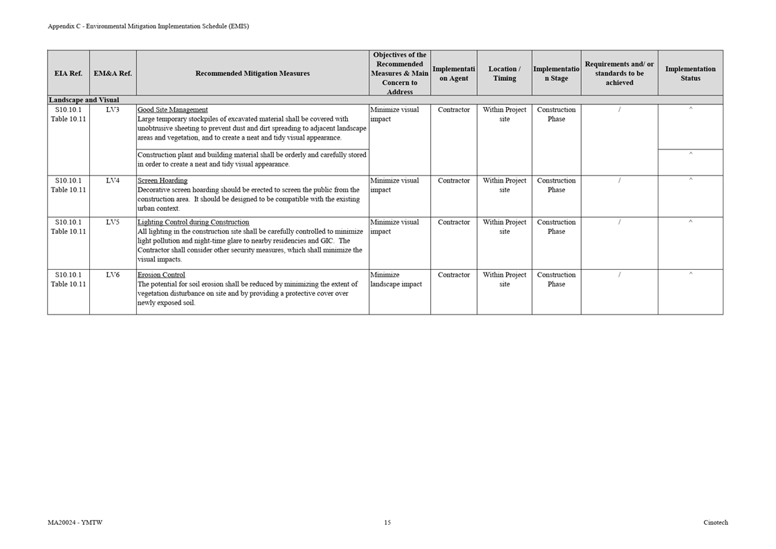 A.4 Bi-weekly inspection of the implementation of landscape and visual mitigation measures was conducted on 11 and 24 December 2025. Details of the audit findings and implementation status are presented in Section 5.