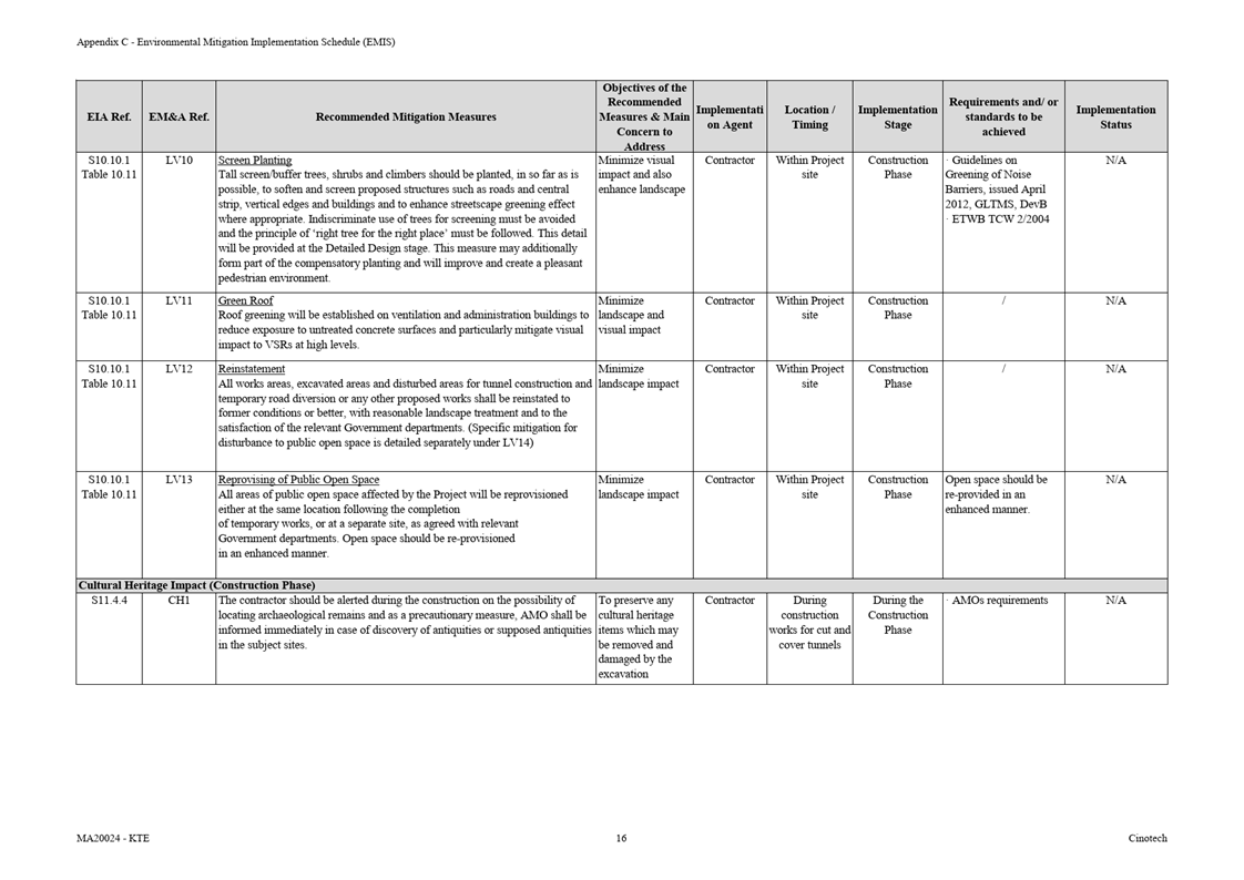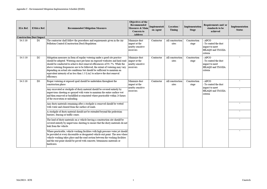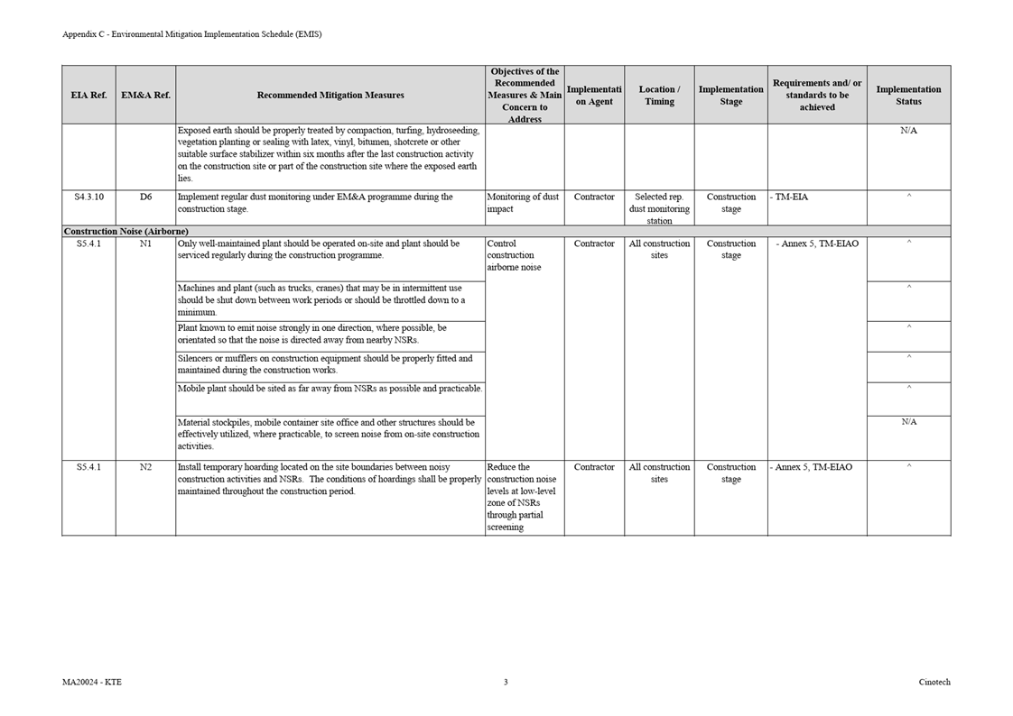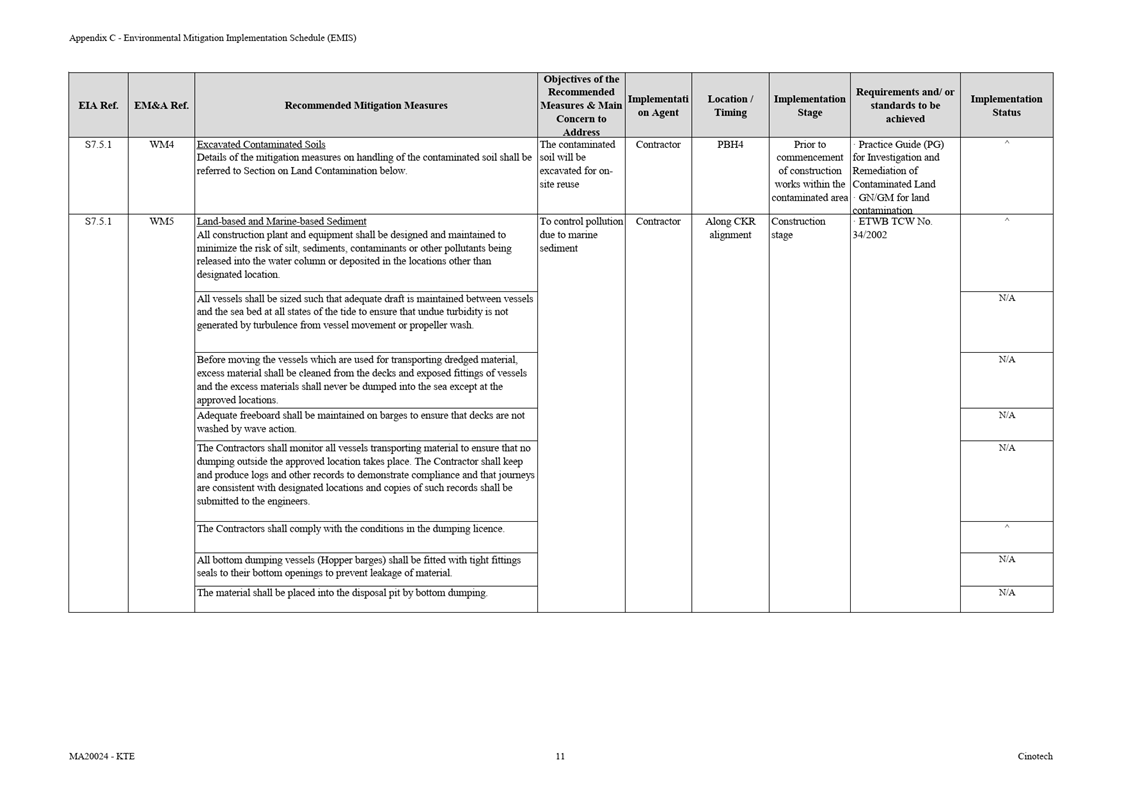Appendix C Environmental Mitigation Implementation Schedule (EMIS)