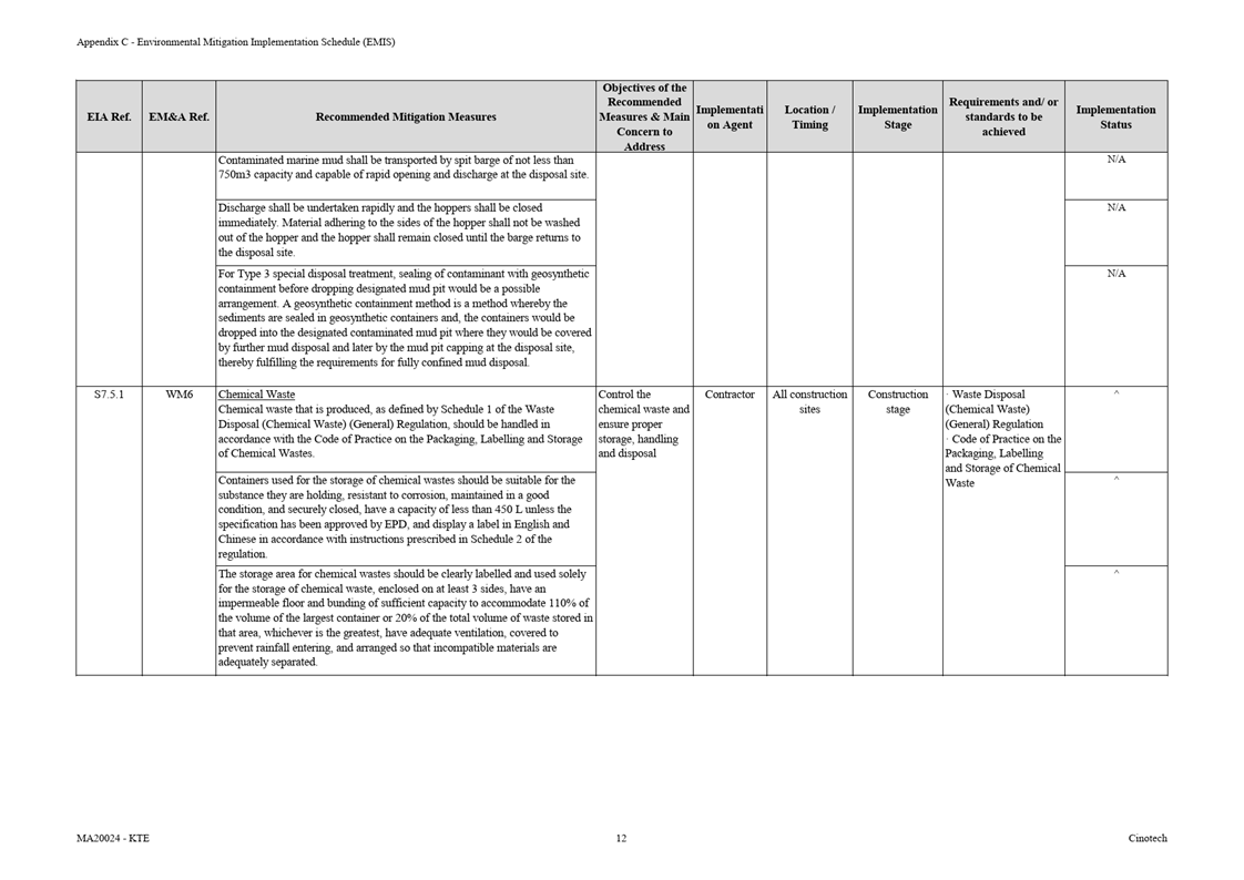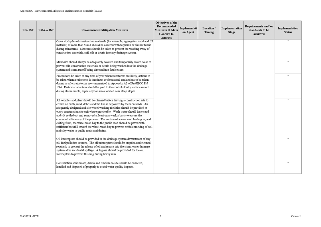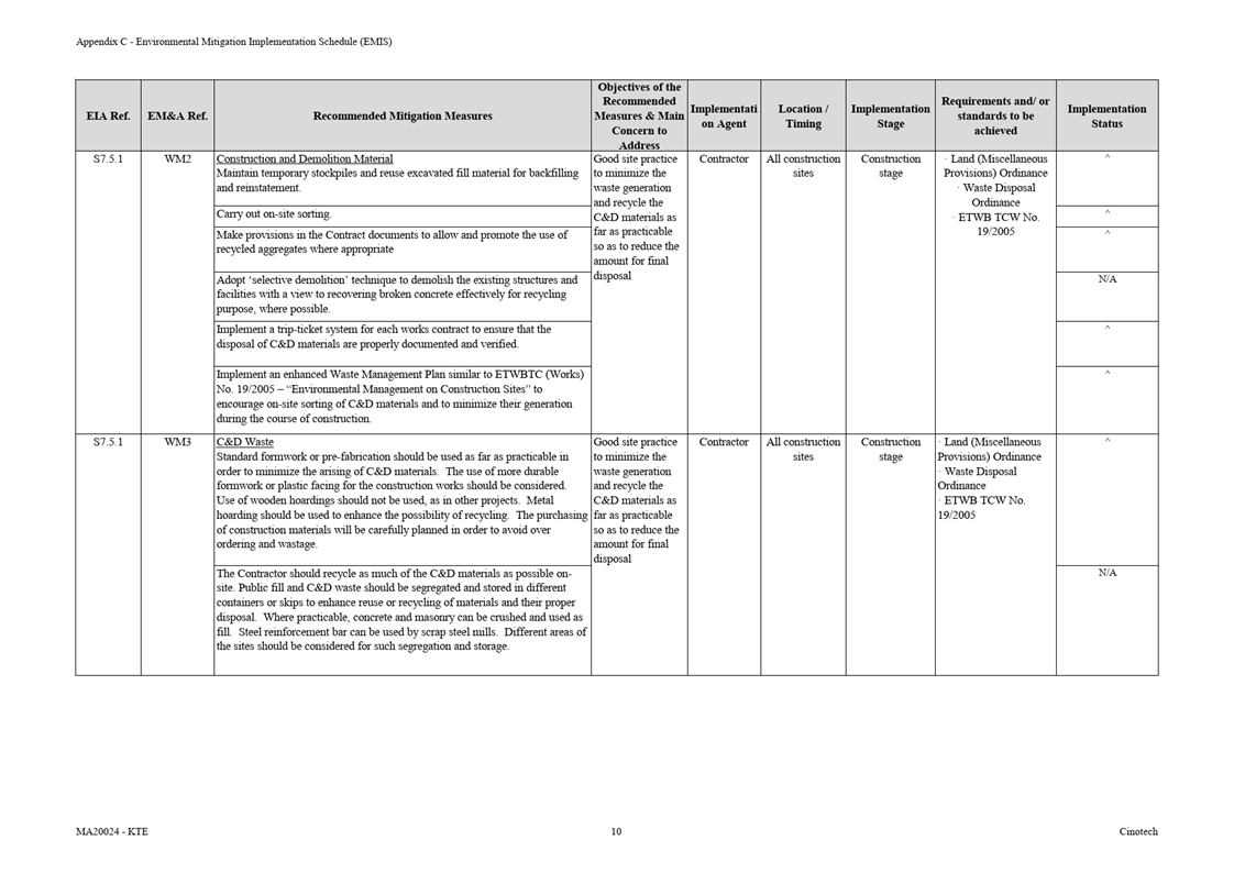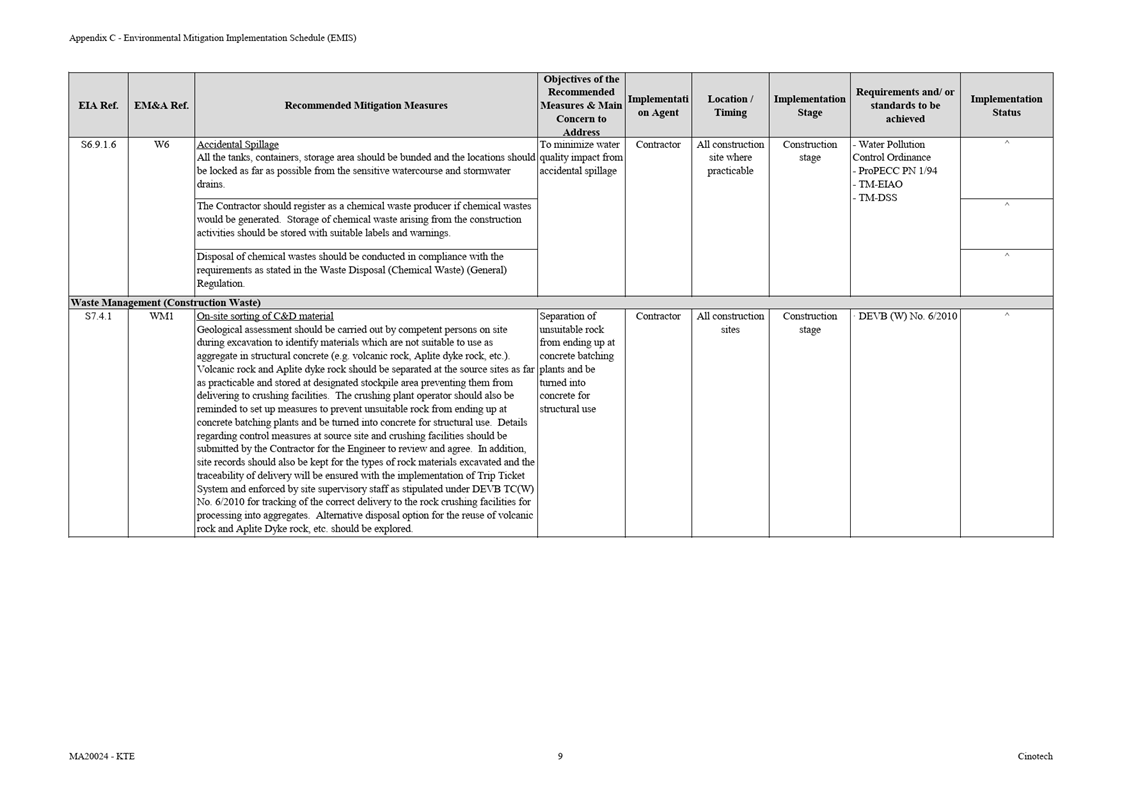 Appendix C Environmental Mitigation Implementation Schedule (EMIS)
