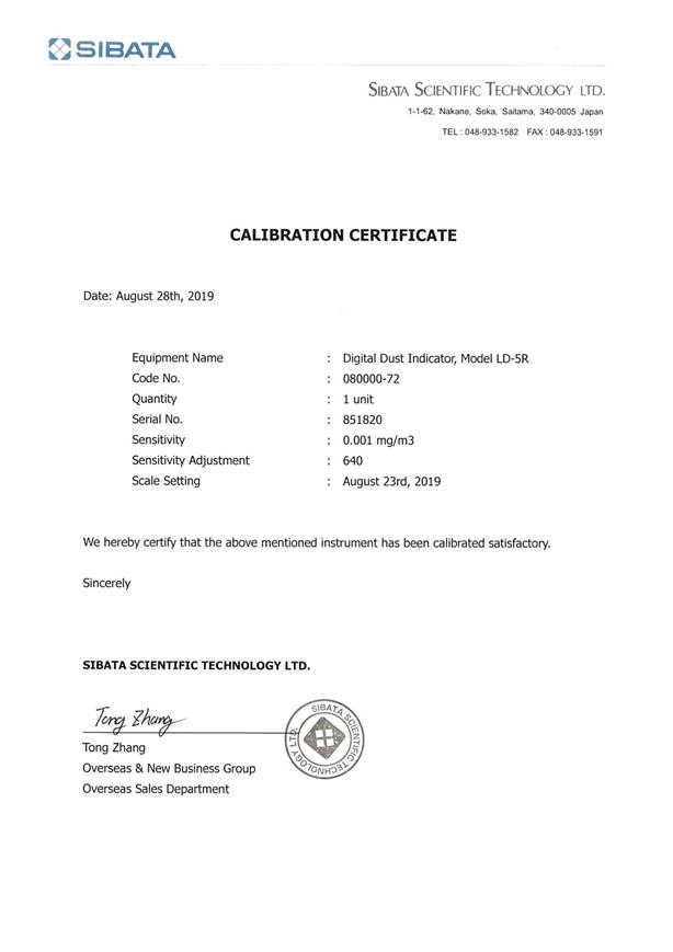 H. Calibration Certificate (Air Monitoring)