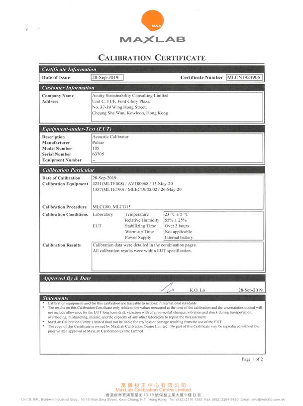 I. Calibration Certificate (Noise)