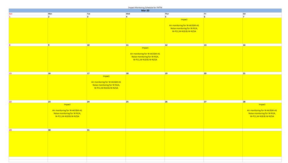 Monitoring Schedule of the Coming Month