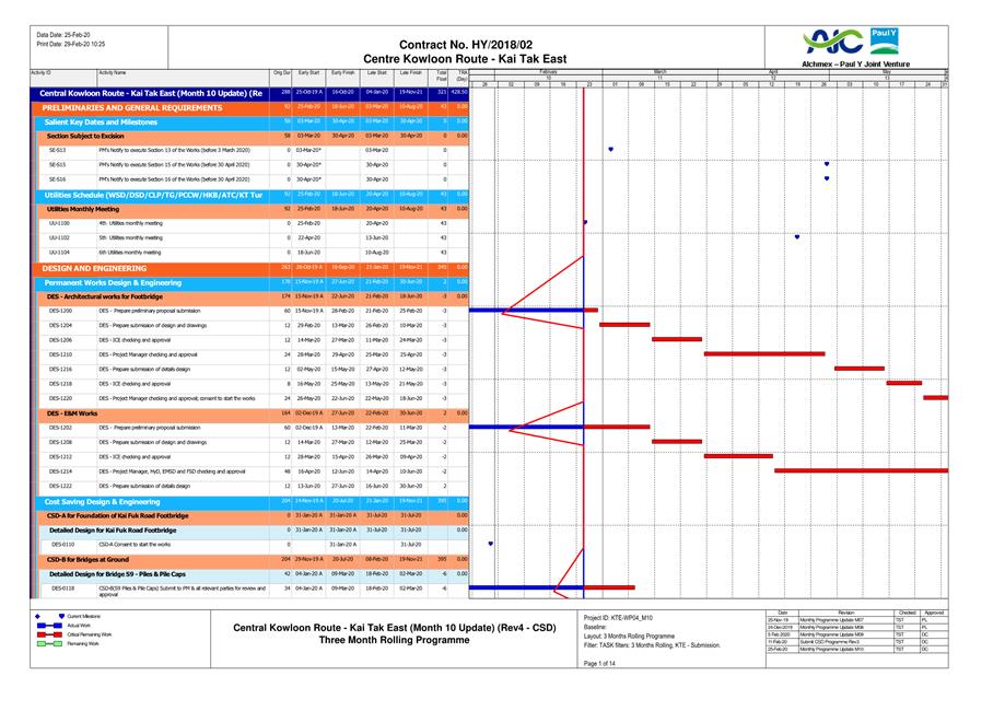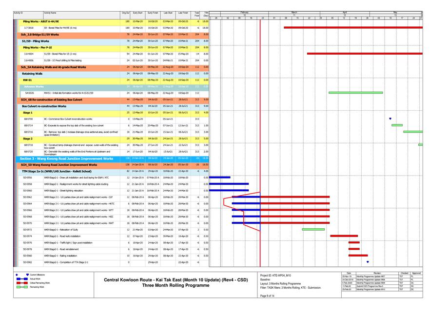 1.4. A summary of major construction activities provided by the Contractor in this reporting period is shown in Table 1.1. The construction programme is presented in Appendix B.