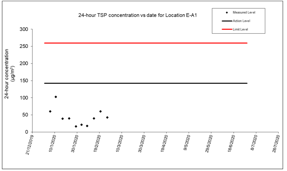 Figure 2: Graphical Illustration of Measured 24-hour TSP (μg/m3) Levels at E-A1