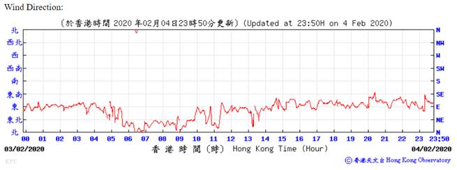 WIND DIRECTION DATA FOR 3, 4, 8, 9, 14, 15, 20, 21, 26, 27 FEBRUARY 2020