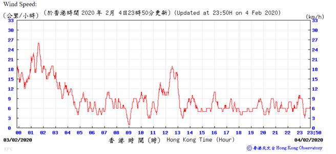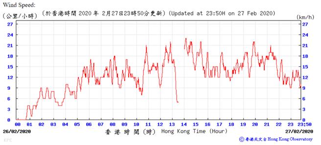 WIND SPEED DATA FOR 3, 4, 8, 9, 14, 15, 20, 21, 26, 27 FEBRUARY 2020