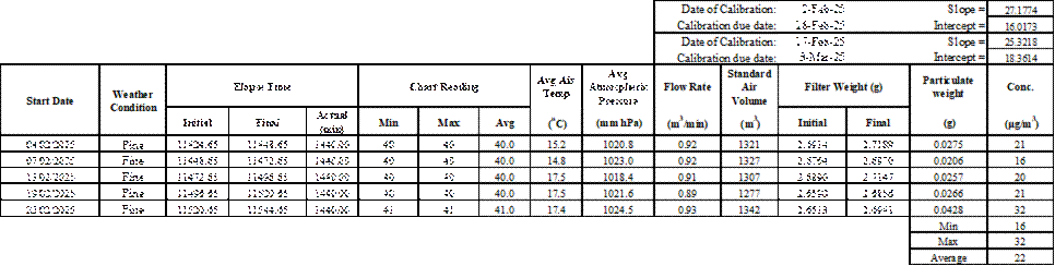 dust monitoring activities in this reporting period is listed below: