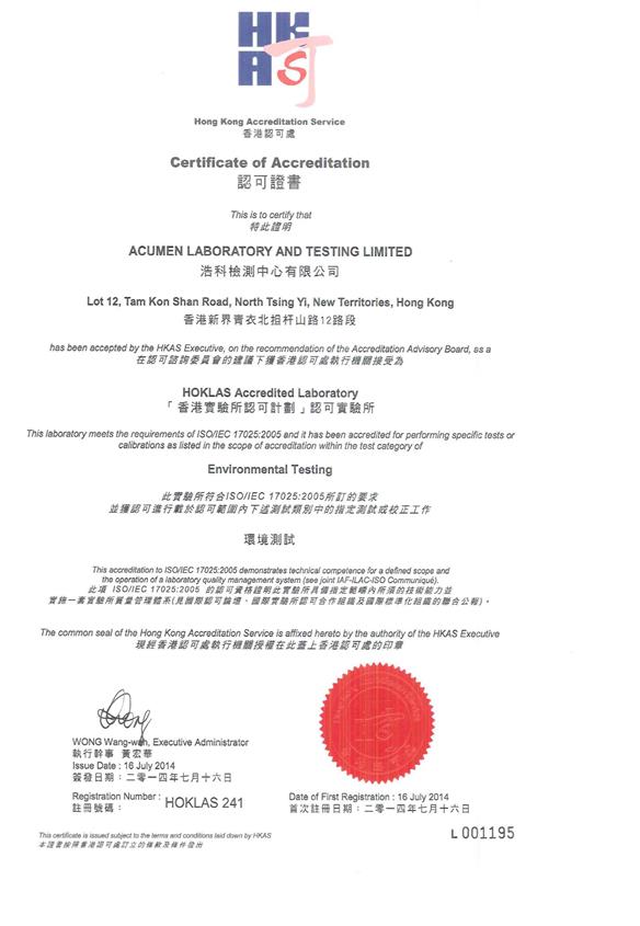 J. The Certification of Laboratory with HOKLAS Accredited Analytical Tests