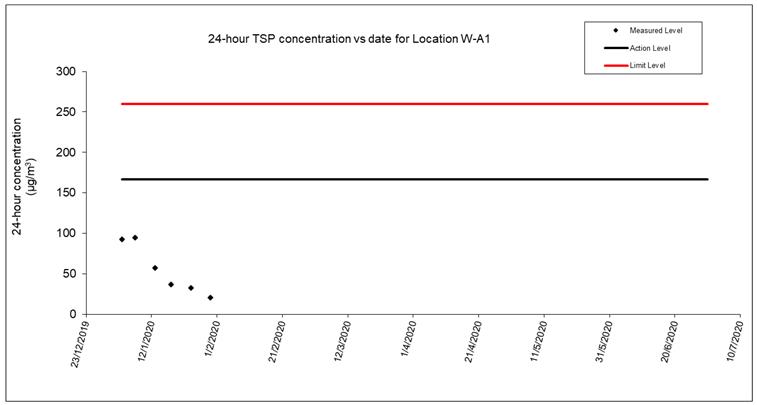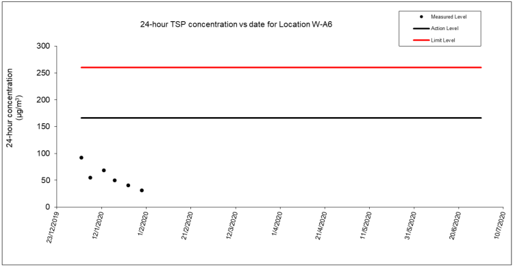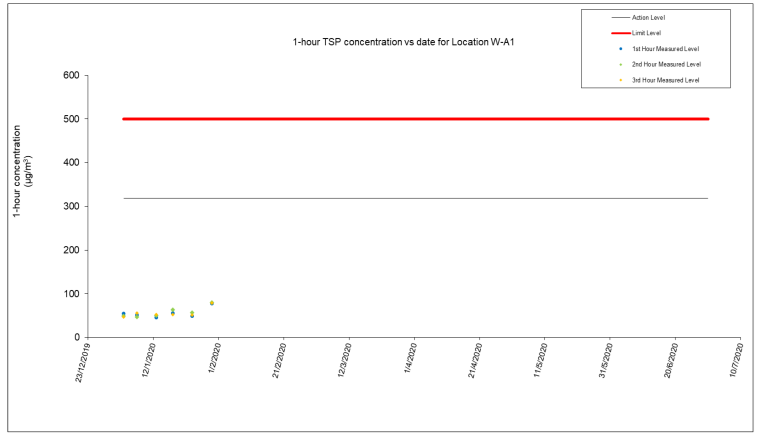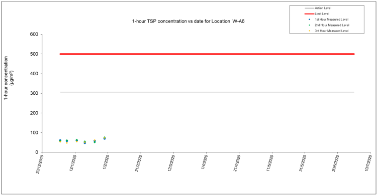 A.10 No exceedance of the Action and Limit Levels of 24-hour TSP, 1-hour TSP and construction noise monitoring were recorded during the reporting month.