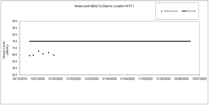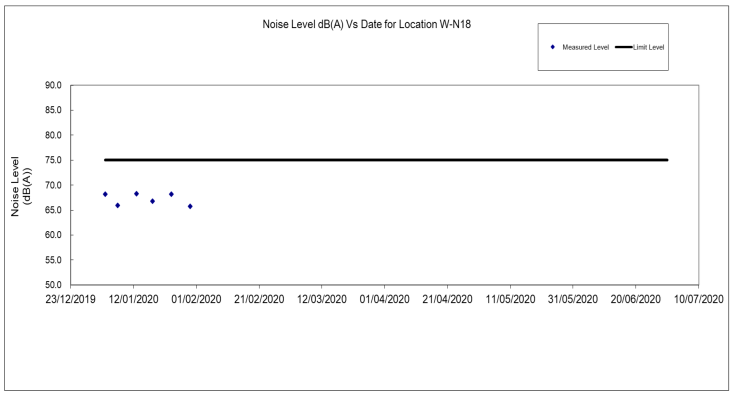 Note: Noise monitoring station at the Coronation Tower 1 (W-P11) was temporarily suspended from 3 February 2020 to 16 February 2020 due to a case of novel coronavirus infection at the Coronation Block 2.