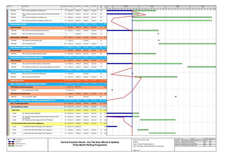 1.4. A summary of the major construction activities undertaken in this reporting period is shown in Table 1.1. The construction programme is presented in Appendix B.