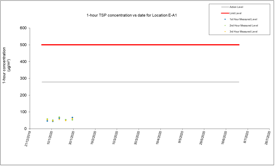 A.9 No exceedance of the Action and Limit Levels of 24-hour TSP and 1-hour TSP monitoring were recorded during the reporting month.