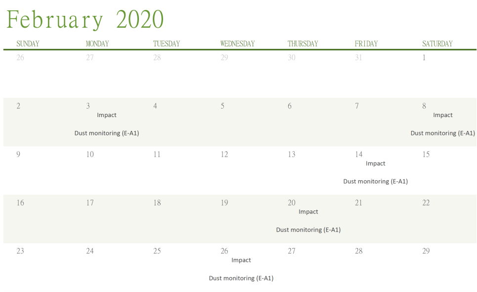 A.6 Bi-weekly inspection of the implementation of landscape and visual mitigation measures was conducted on 2, 15 January 2020. Details of the audit findings and implementation status are presented in Section 5.