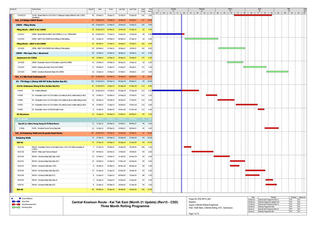 · Bored Pile at Portion 1A, 2B, 3B, Kai Cheung U Turn & Kai Cheung Loop Road. · Construction Work for the Foot Bridge at Kai Fuk Road. · Sheet piling Works for Adit at Area Part 1B. · Sheet piling Works for Underpass at Portion 3B. · Construction of Marine Platform at Kai Tak Nallah · Reconstruction of Box Culvert at Portion 2B · Sheet piling Work at Area Part 1A. |