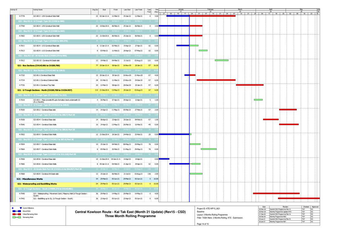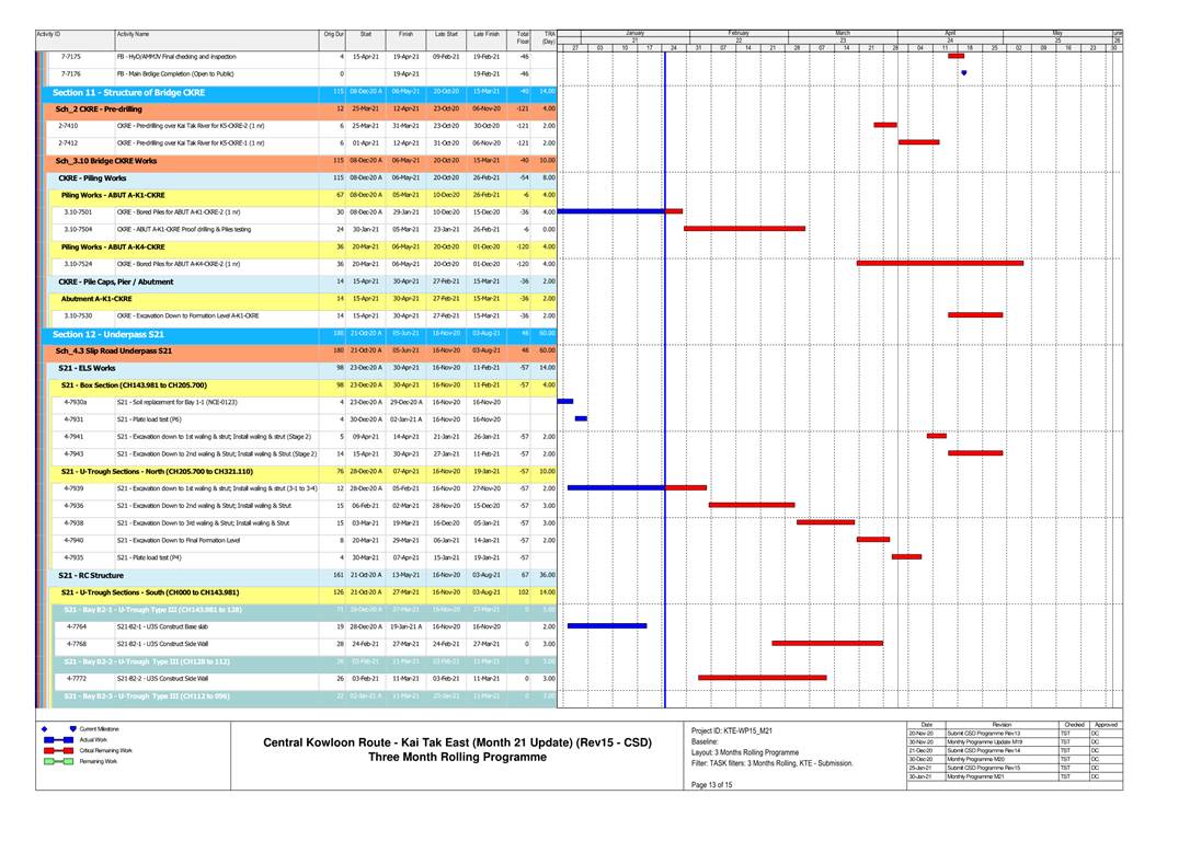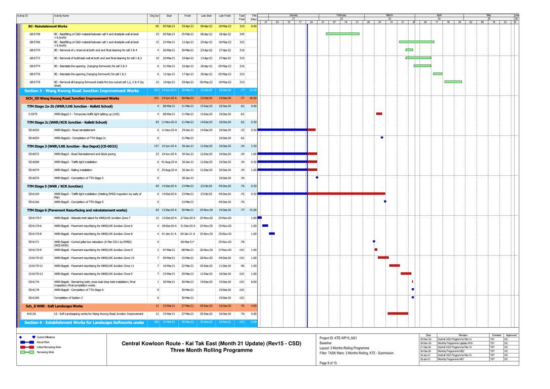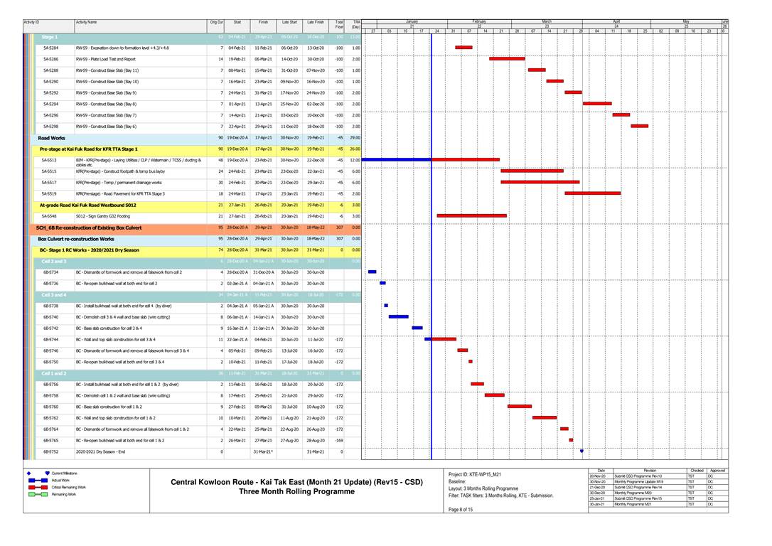 · Bored Pile at Portion 2B, 3B, Kai Cheung U Turn & Kai Cheung Loop Road. · Construction Work for the Foot Bridge at Kai Fuk Road. · Excavation Works for Adit at Area Part 1B. · Excavation Works for Underpass at Portion 3B. · Construction of Marine Platform at Kai Tak Nallah · Reconstruction of Box Culvert at Portion 2B · Sheet piling Work at Area Part 1A. |