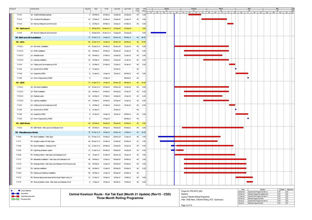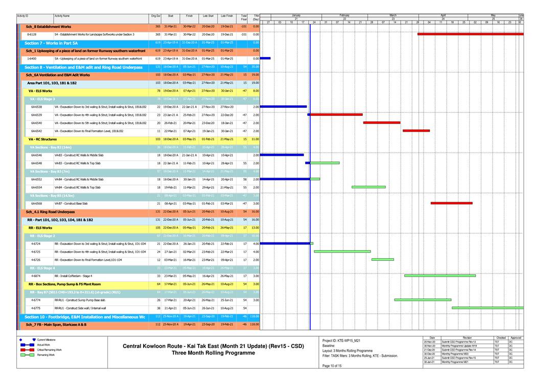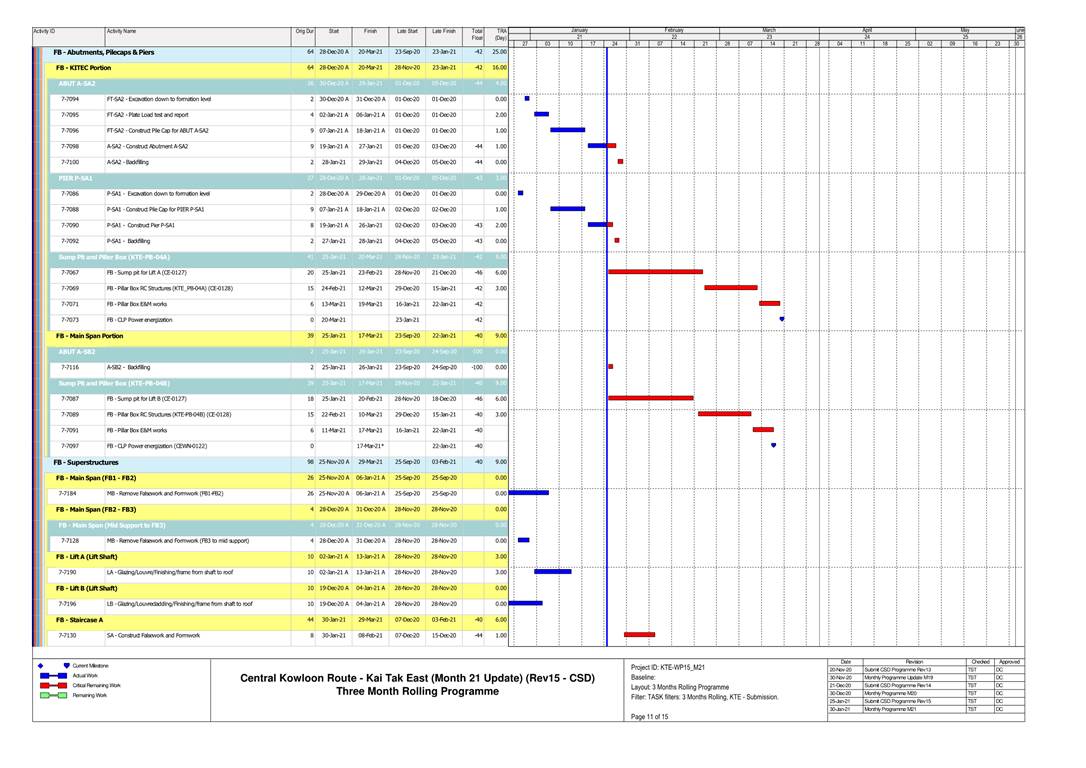 1.4. A summary of major construction activities provided by the Contractor in this reporting period is shown in Table 1.1. The construction programme is presented in Appendix B.