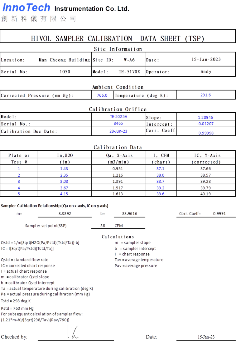H. Calibration Certificate (Air Monitoring)