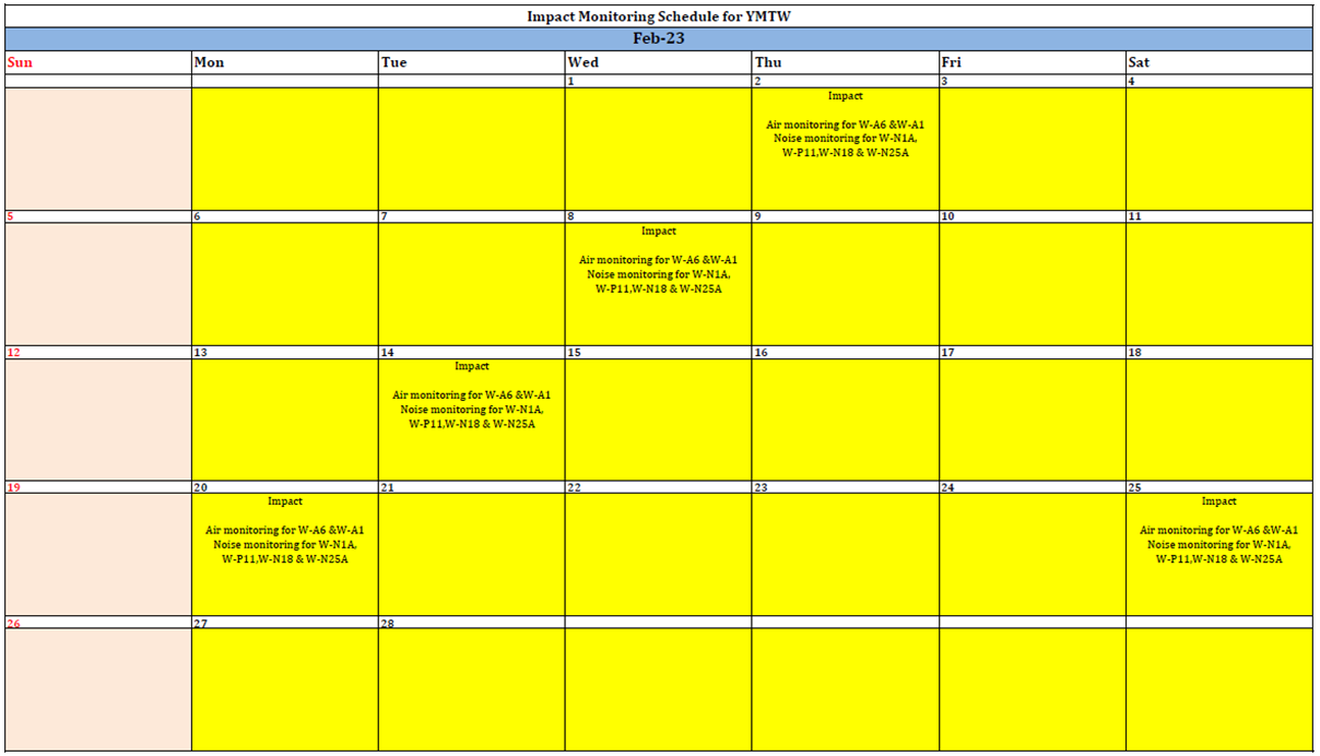 A.11 A summary of the construction activities provided by Main Contractor in the next reporting month is listed below: