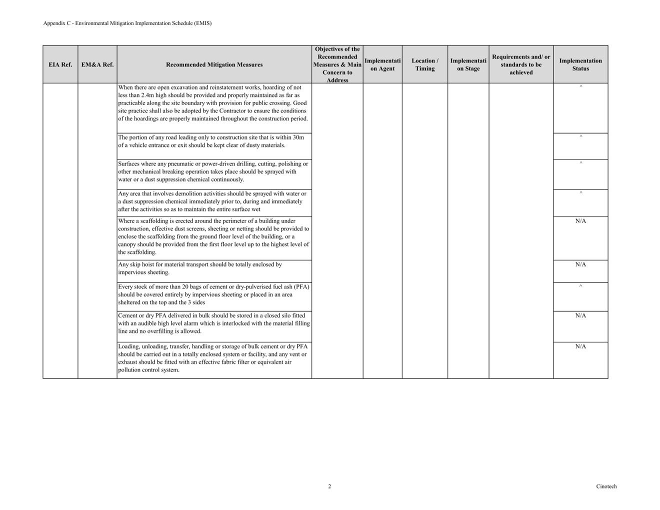 Appendix C Environmental Mitigation Implementation Schedule (EMIS)
