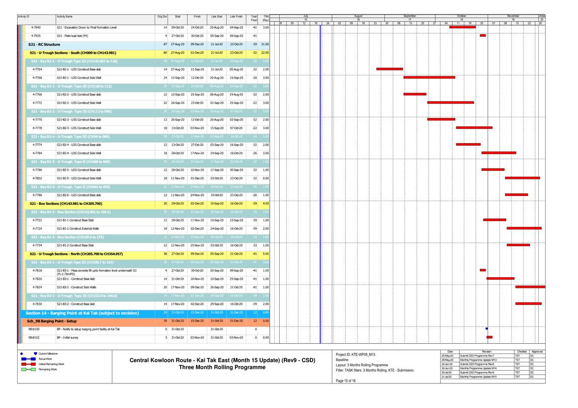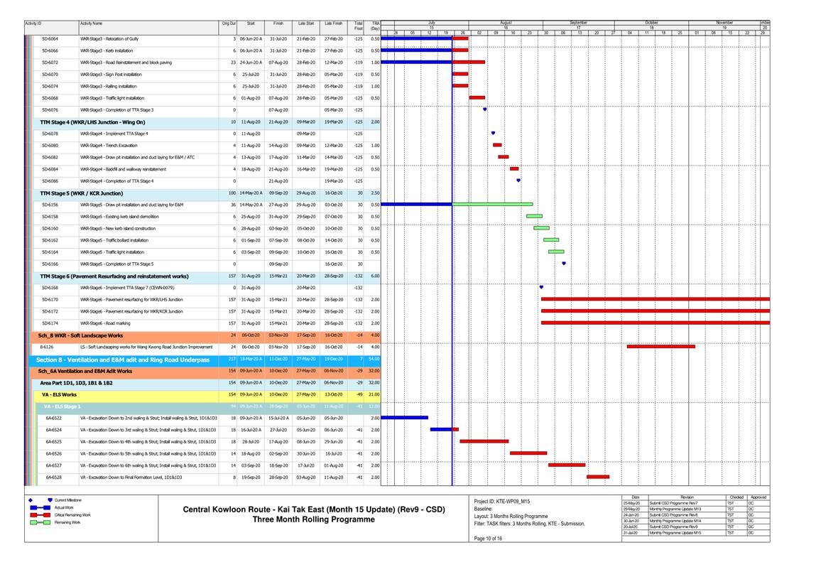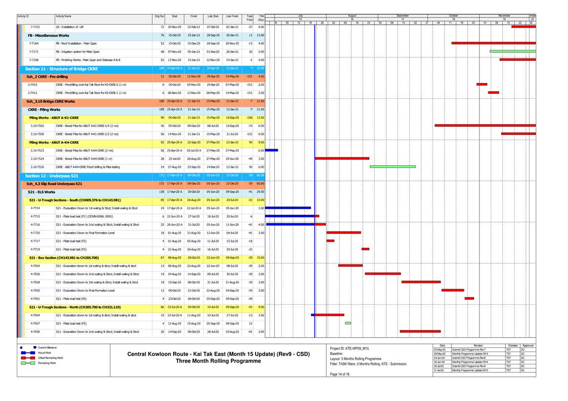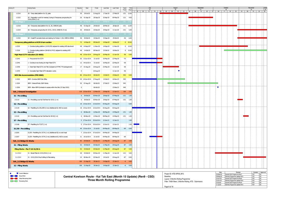 1.4. A summary of major construction activities provided by the Contractor in this reporting period is shown in Table 1.1. The construction programme is presented in Appendix B.