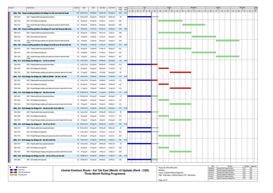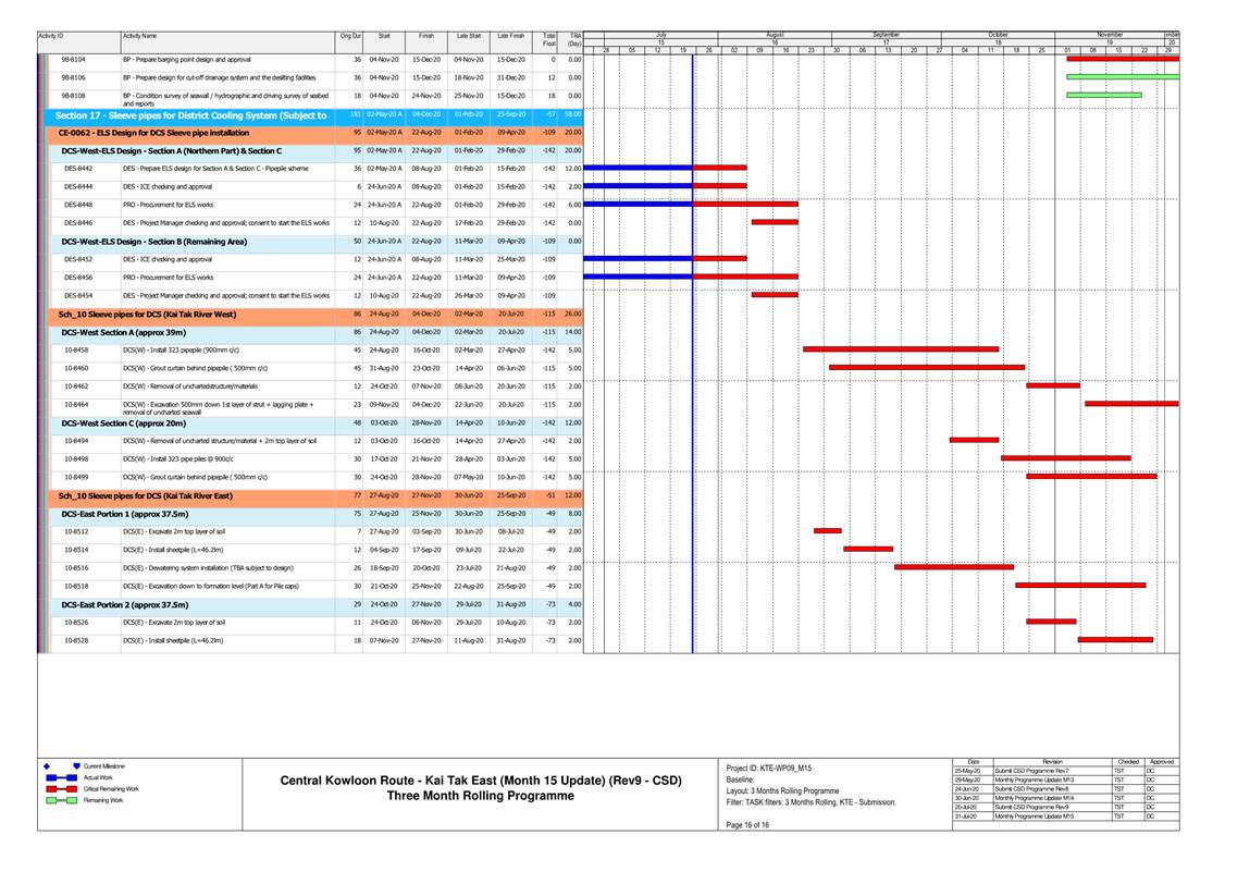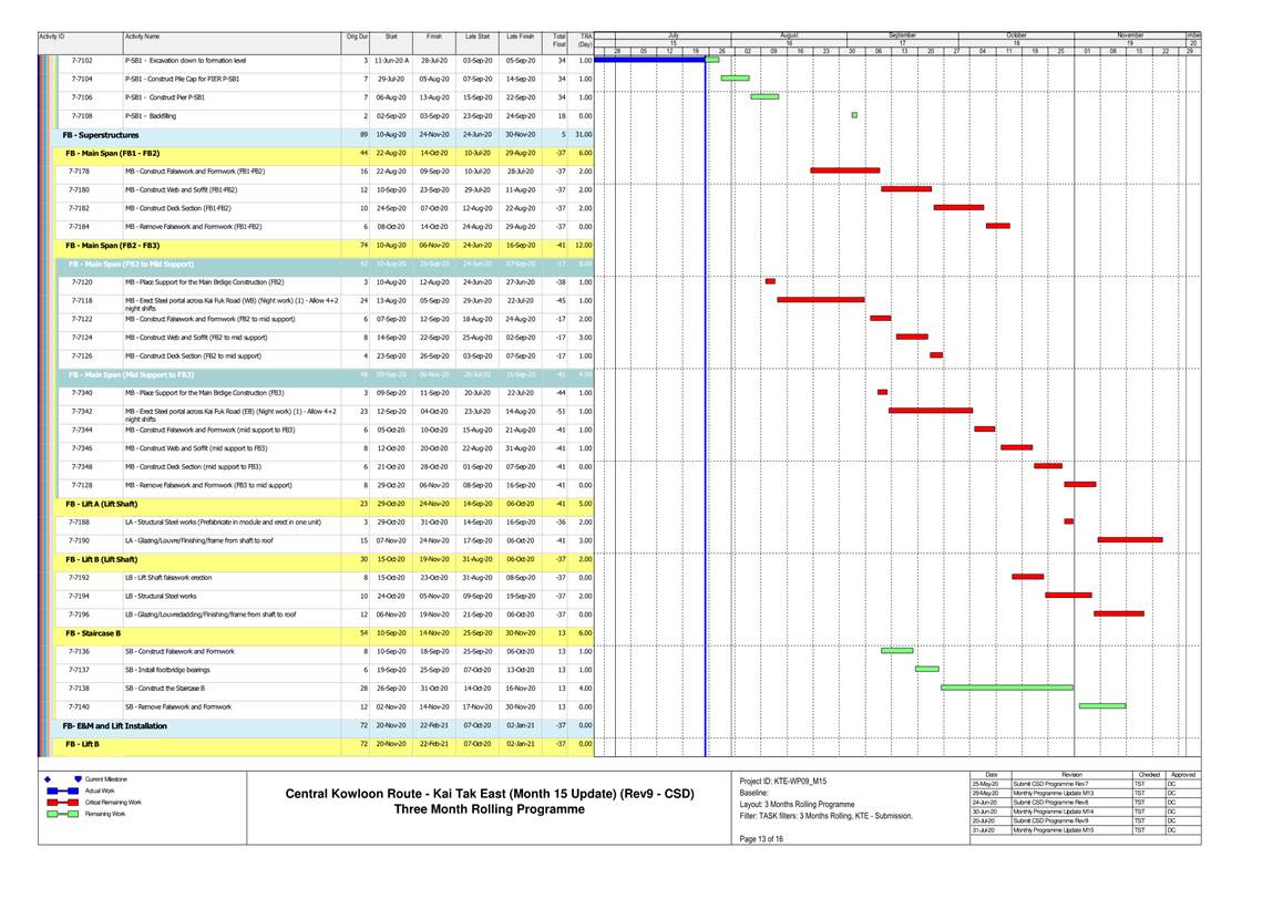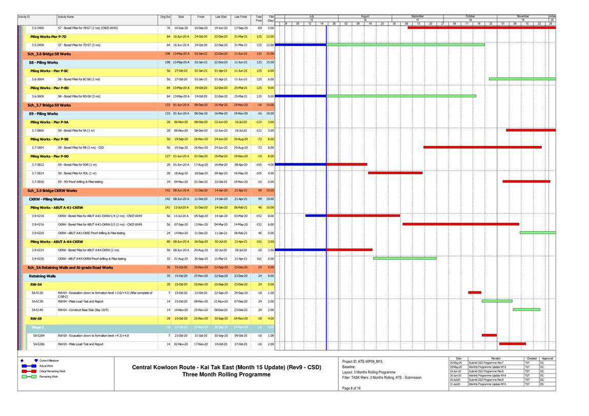 1.4. A summary of major construction activities provided by the Contractor in this reporting period is shown in Table 1.1. The construction programme is presented in Appendix B.