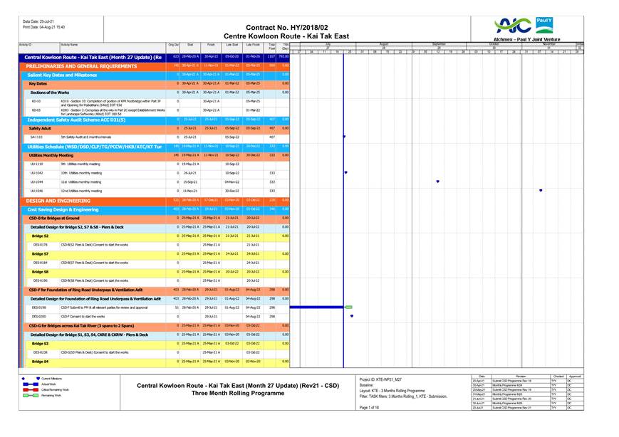A.1 Alchmex – Paul Y Joint Venture (“Contractor”) commenced the construction works of Highway Department (HyD) Central Kowloon Route Contract No. HY/2018/02 – Section of Kai Tak East (“The Project”) on 9 September 2019. This is the 23rd monthly Environmental Monitoring and Audit (EM&A) report presenting the EM&A works carried out during the period from 1 July 2021 to 31 July 2021.