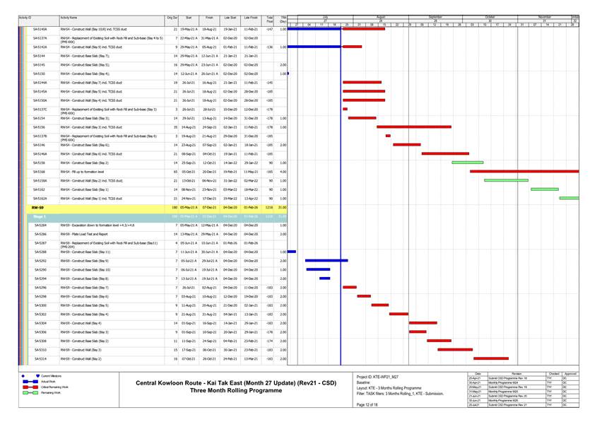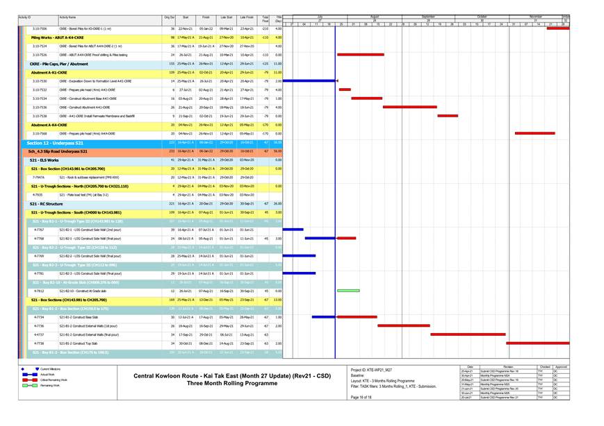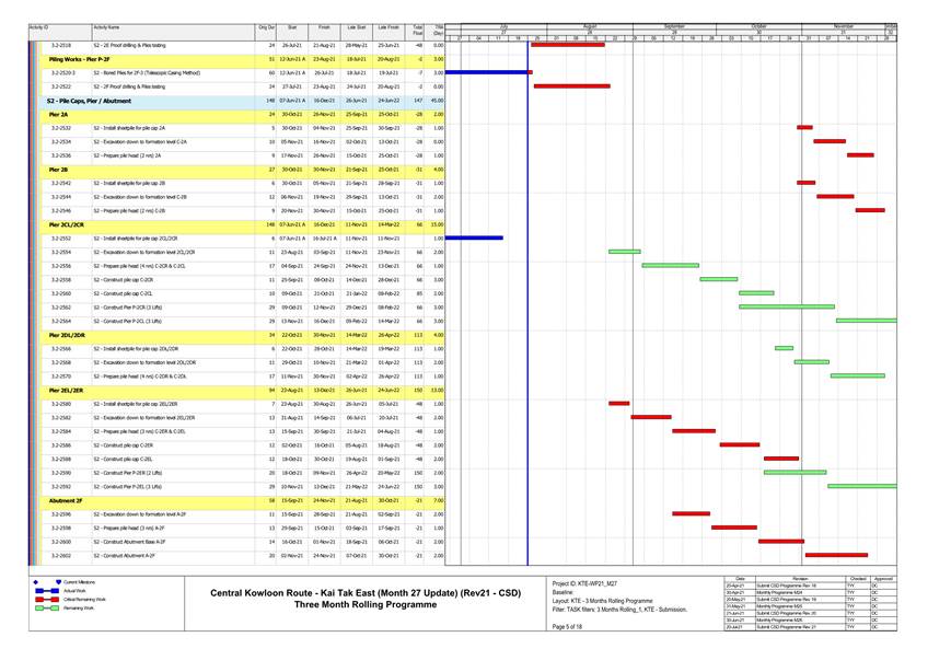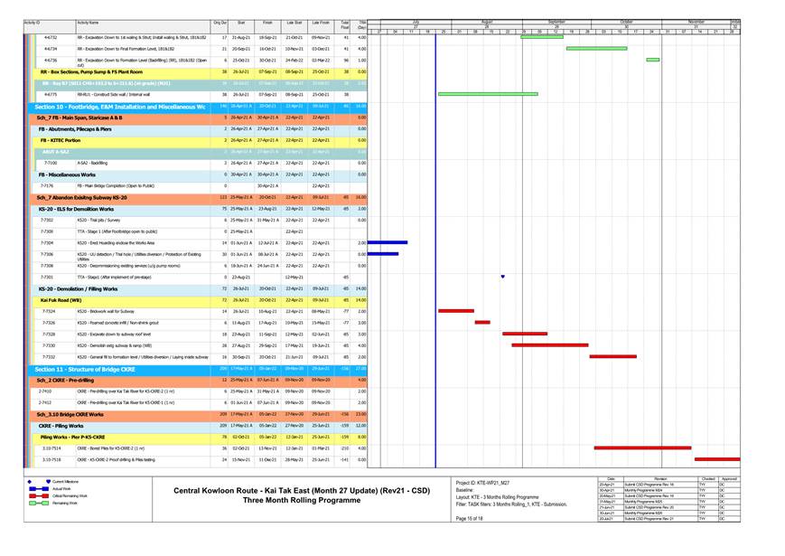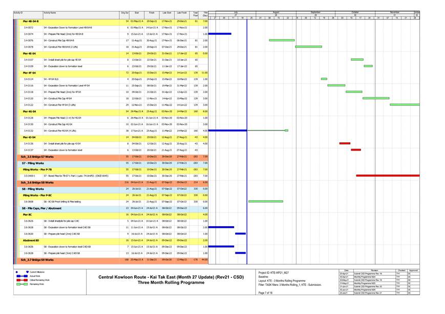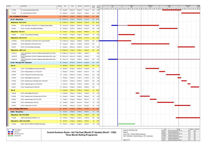 1.4. A summary of major construction activities provided by the Contractor in this reporting period is shown in Table 1.1. The construction programme is presented in Appendix B.