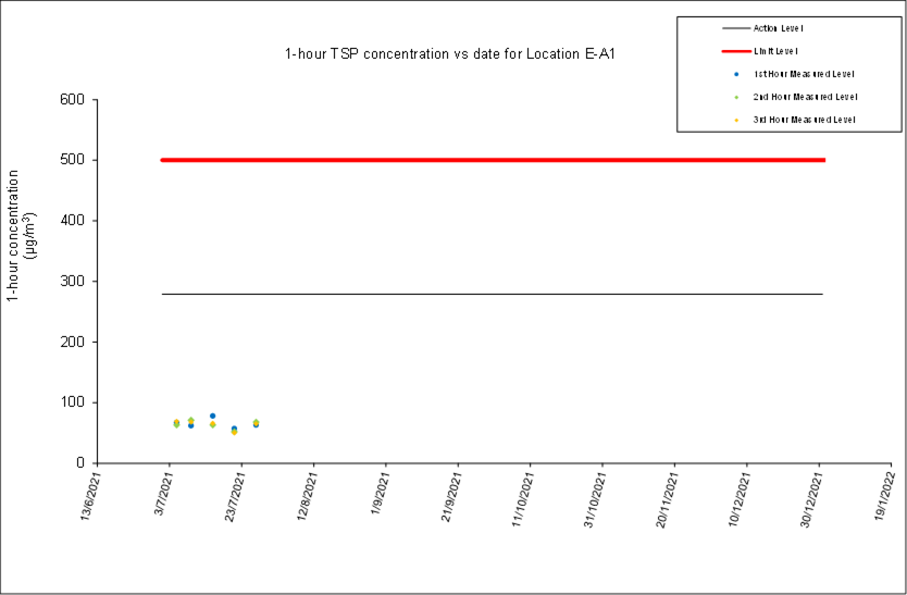 A.7 No exceedance of the Action and Limit Levels of 24-hour TSP and 1-hour TSP monitoring were recorded during the reporting month.