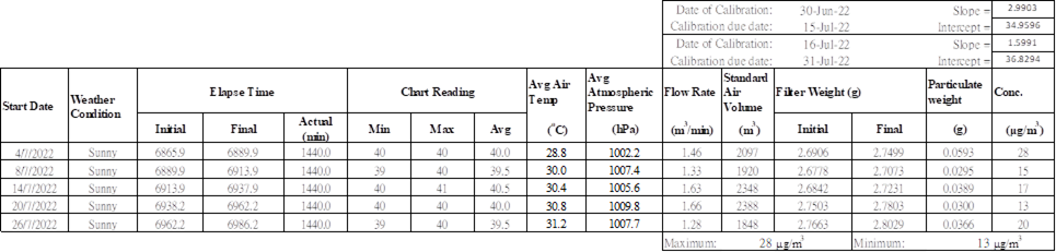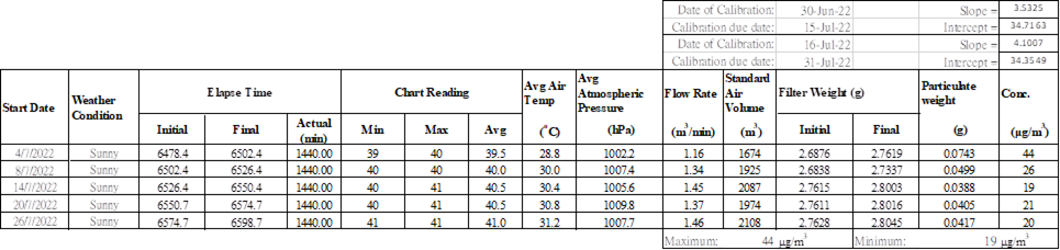 2.2 No Action/Limit Level exceedance was recorded for all 1-hour TSP and 24-hour TSP monitoring in the reporting month.